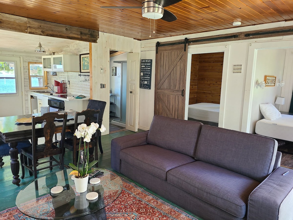 This stunning two bedroom cottage is equipped with a fully modern interior. Keep warm by the beautiful Norwegian gas fireplace in the winter; stay cool with refreshing AC in the warmer months. DOCK has it all.