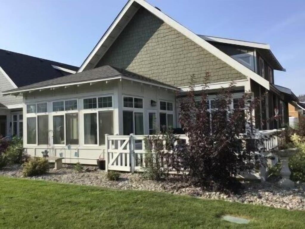 Glassed and screened in porch gives you tons of extra living space to enjoy. Porch has beautiful picnic table to enjoy wonderful dinners in the warm Osoyoos Nights.