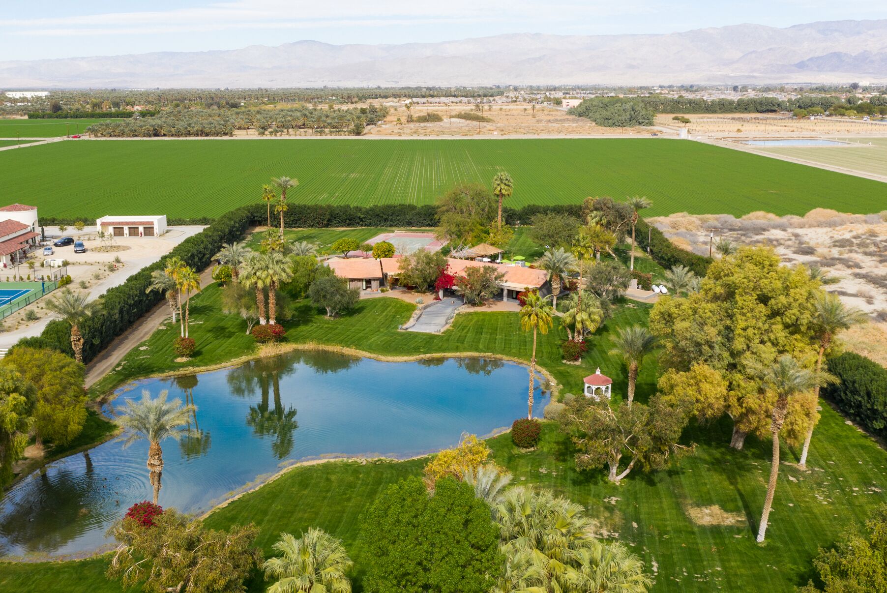Welcome to Paradise. If heaven were a place on earth, it’d be here at Paradiso, where all your favorite people can congregate and play on a lush 5 acre property in Coachella Valley. The estate comes equipped with a private bar, a modern chef's kitchen, outdoor grill lounge, and lakeside gazebo. Engage in friendly competition with a game of bocce ball, ping pong, pool, tennis or volleyball. Activities are endless here but some leisurely favorites include sunbathing on the in-pool chaise loungers, picnicking by the lake and hosting cocktail parties and cookouts in the evening.