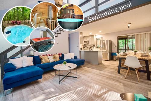 Cottages in Pocono Mountains that include a pool or hot tub include: