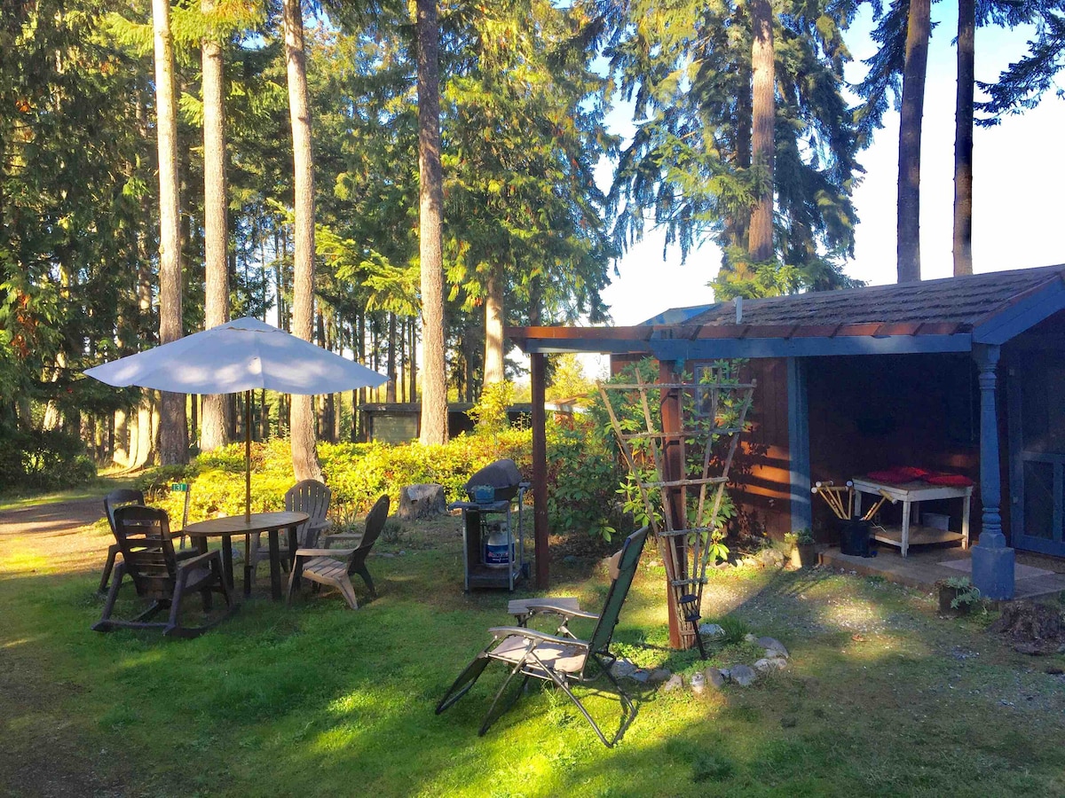 In the evenings, relax outside in front of the fire while cooking up s'mores and gazing up at the stars. The positioning of the fire pit allows for the feeling of being "on" the water, can't get any closer without getting in! Perfect spot to end the day after day trips and hikes throughout the Olympic National Park.