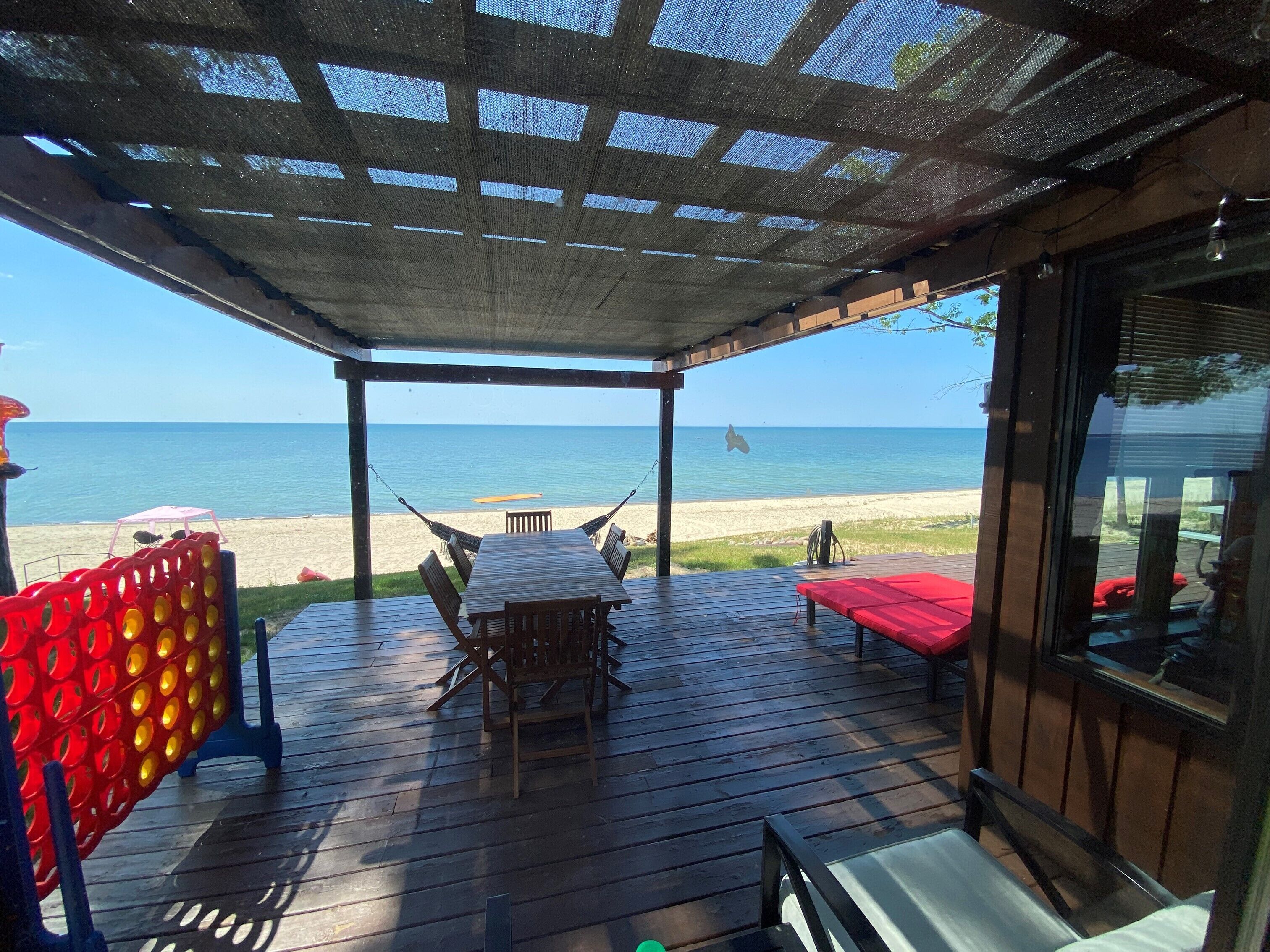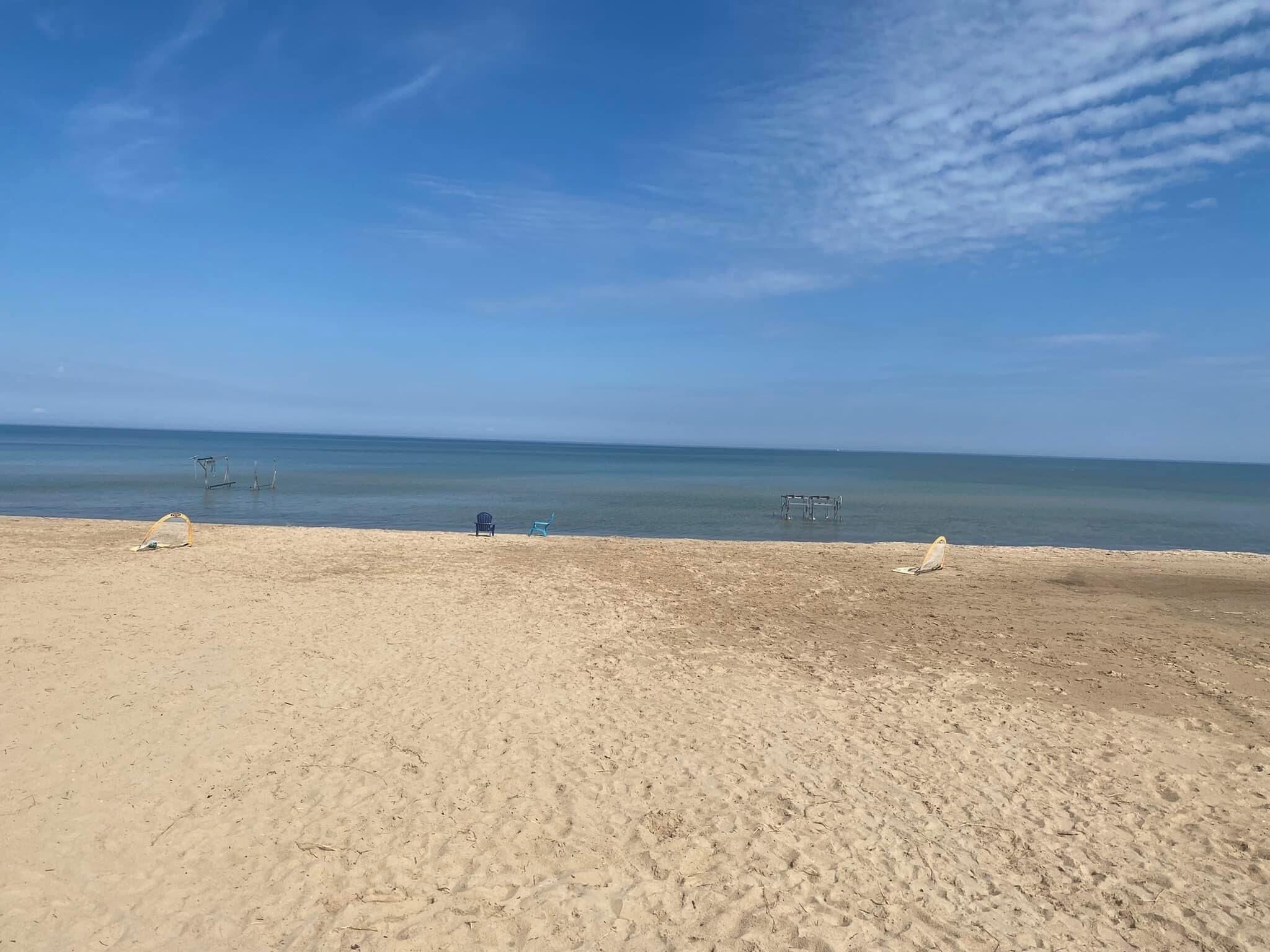 This recently remodeled beauty sits on the shores of Lake Huron with a super sandy beach, facing west which brings the best sunsets in Michigan!.