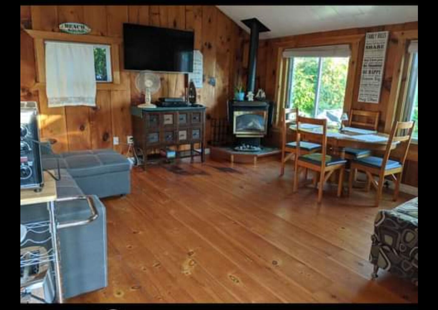 This adorable cottage has two bedrooms, a pull out couch (double) in the sunroom which can be closed off for privacy. It also has a futon (double) in the open concept living room/dining room.