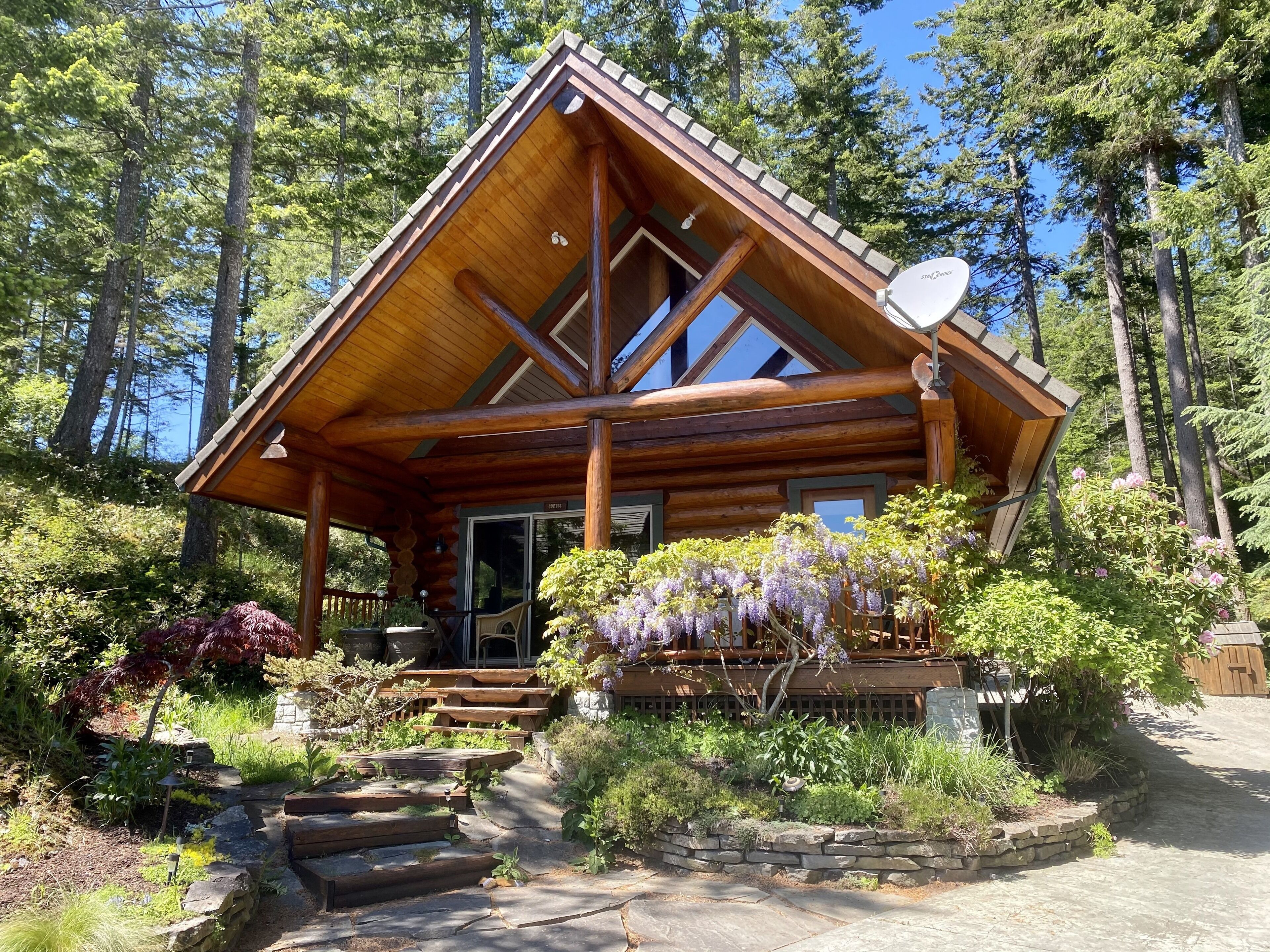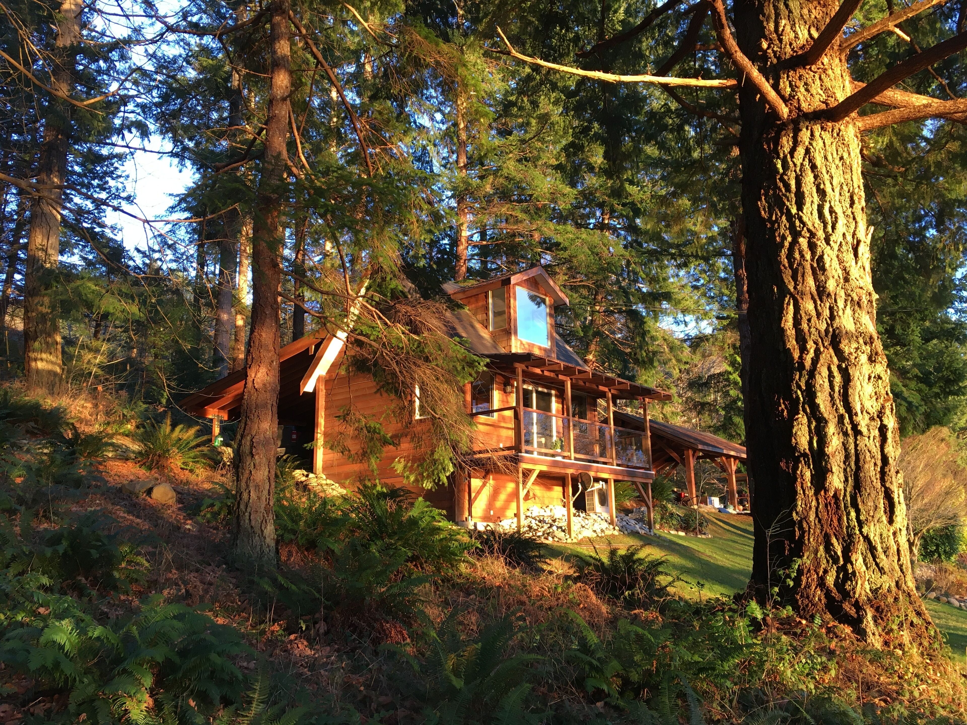 The vacation rental cottage is well appointed, full kitchen, living room, 2 bedrooms with queen beds, vaulted ceiling and sky lights make it bright, including wood stove for ambiance. Incredible forest with large trees and ferns, warm and welcoming environment. Very private, great for family, couples and friends get-away.