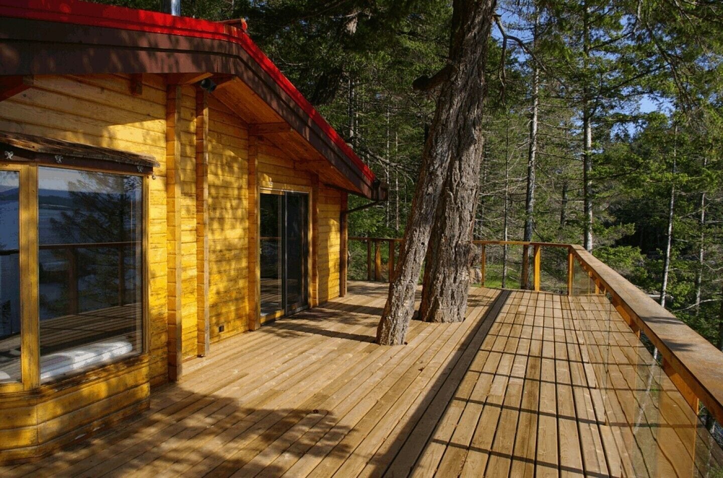 With a large veranda-like living area offering south western exposure, light warms the natural wood finish. Bamboo furniture and built in bench seats offer a unique flair. French doors open from the living room to the surrounding deck.