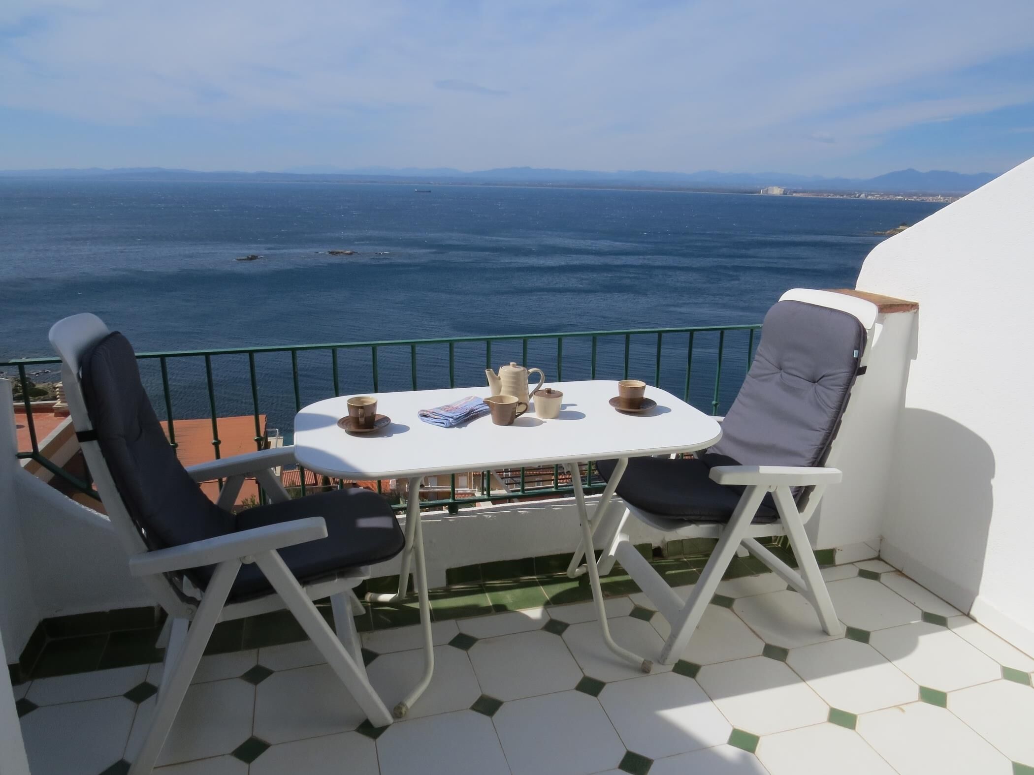 * Terrace with a barbecue facing the Northwest overlooking the Bay of Roses.