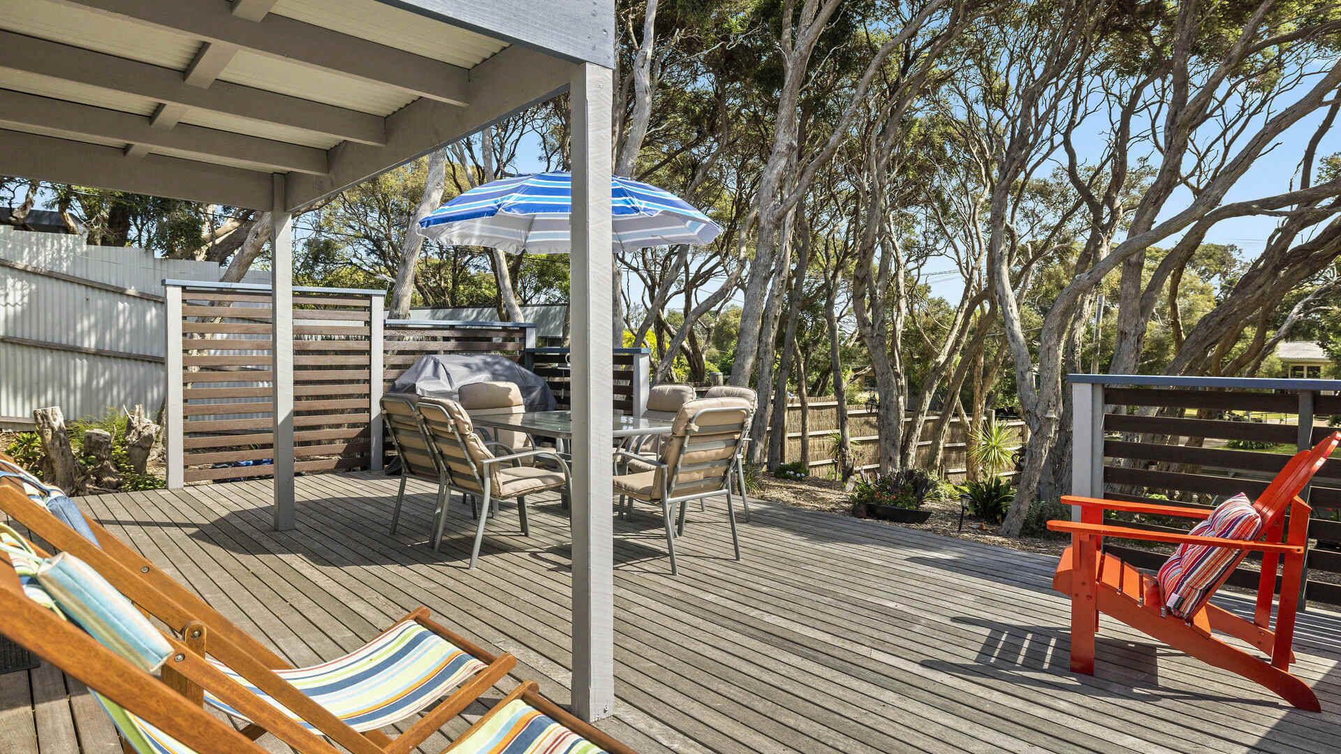 Mornington Peninsula is bursting with coastal activities, galleries and local epicurean delights. Nyora Beach House @Rye captures the feeling of this vibrant seaside over easy and is the perfect location to explore the Peninsula. No need to pack the whole house to stay, all the essentials are here for you. A private front yard features a broad sun deck. Step inside to find an immaculate beach house with 3 bedrooms 2 bathrooms two TV’s, air con, full kitchen, laundry facilities and a huge lounge area. Outside the property has a spacious safe grassy garden for the kids to play in.
