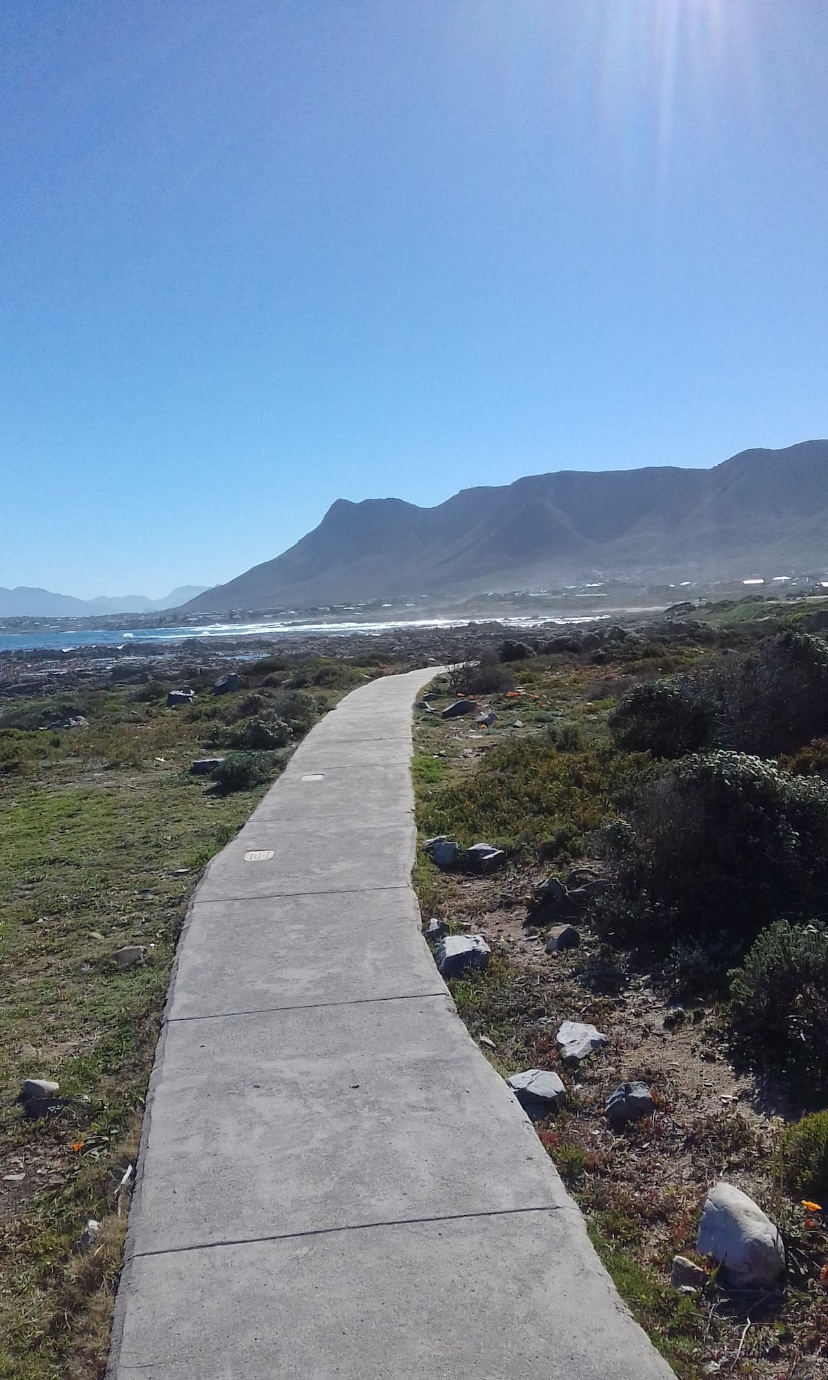 Walk straight off the balcony on to the seaside path that connects the pristine Sandbaai and Onrus beaches, both a short stroll from here. This home has 3 spacious ensuite bedrooms, two with queen beds and the third with two single beds, making it ideal for two couples or a couple with two children. The open plan living area provides uninterrupted sea views and sliding doors that lead on to a large patio, where, depending upon the time of year, you can watch surfers catching waves at Onrus beach, schools of dolphins swimming by, whales basking in the bay, or the crayfish boats harvesting their catch.
