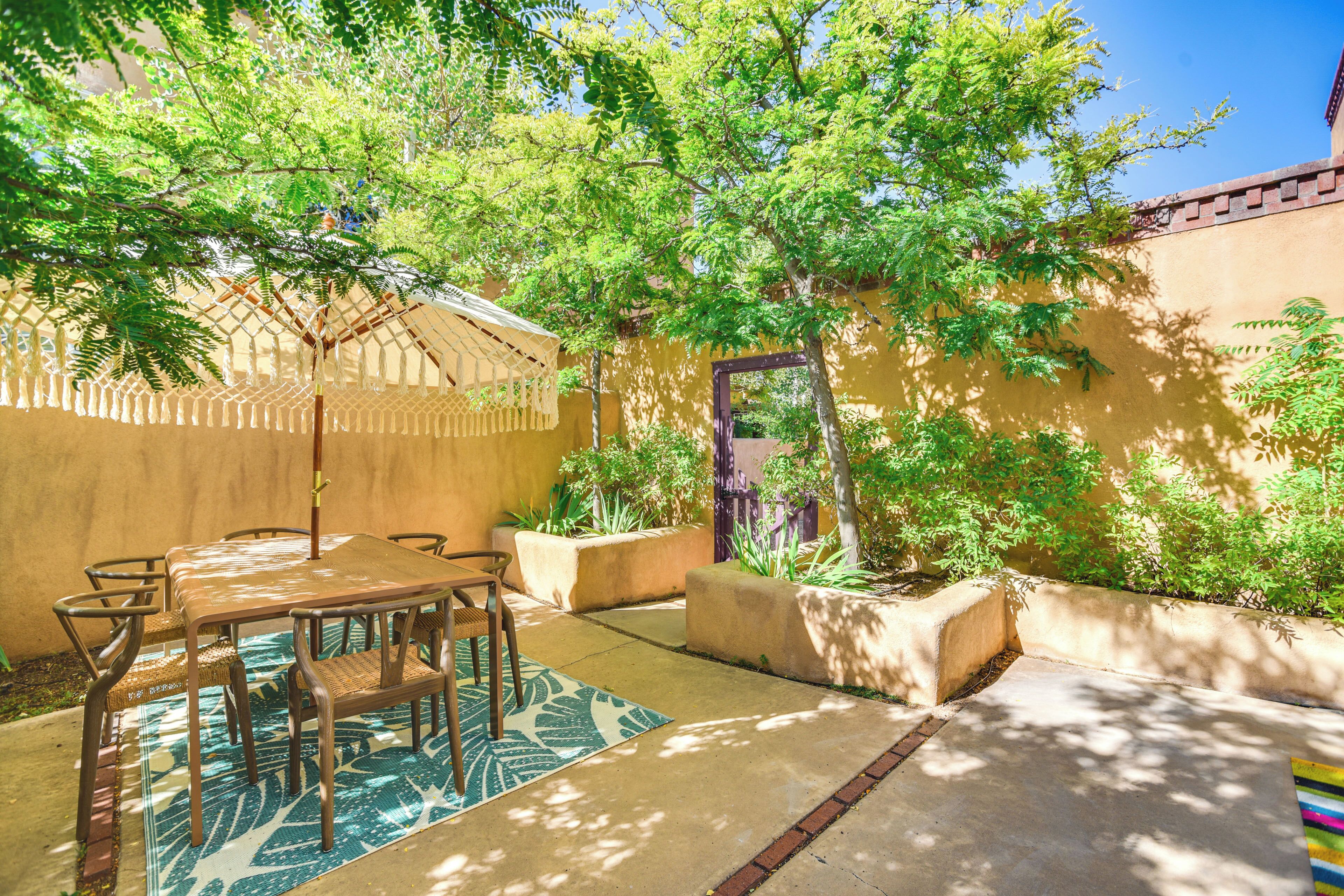 Very special two-story cottage within walking distance of downtown and the Rail Yard. Two bedrooms plus two full bathrooms upstairs, kitchen, dining, living room and powder room on main floor. Large windows admit beautiful light, outdoor patio has seating, dining areas and gas grill. Centrally located, this charming home features a mix of antique and contemporary furnishings. We have four fireplaces in the house; the one in the master bedrooms upstairs can be used to burn wood.