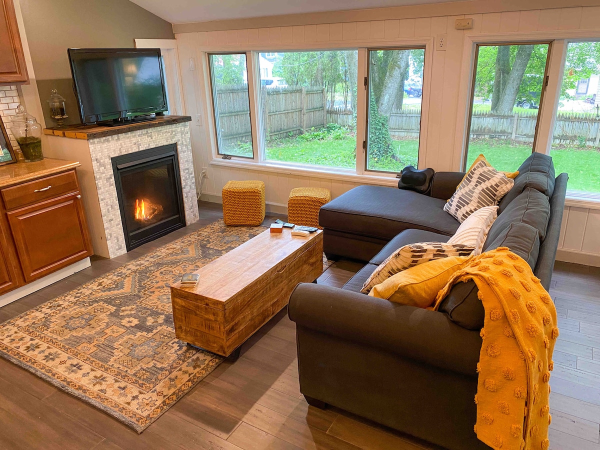 A quaint and cozy 900 square foot all season cottage, situated with partial views of picturesque Saratoga Lake. Enjoy your own private lake access, and watch the most stunning sunsets with your feet in the water. Go for a swim or get your tan on! There is a beautiful fenced in yard, fire pit and a large deck. The patio is fitted with seating for 6 and a gas grill, great for barbecues! Relax with a crackling camp fire and bring out the s’mores!