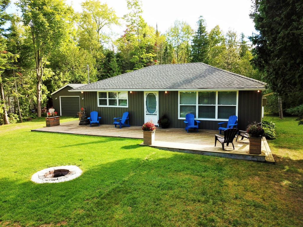 Large lot only a 5 min walk to public beach access. Fire pit and outdoor games for outside play. The cottage is fully updated with quality finishings. The kitchen is equipped with everything you'll need. (No Air conditioning but has fans in every room)