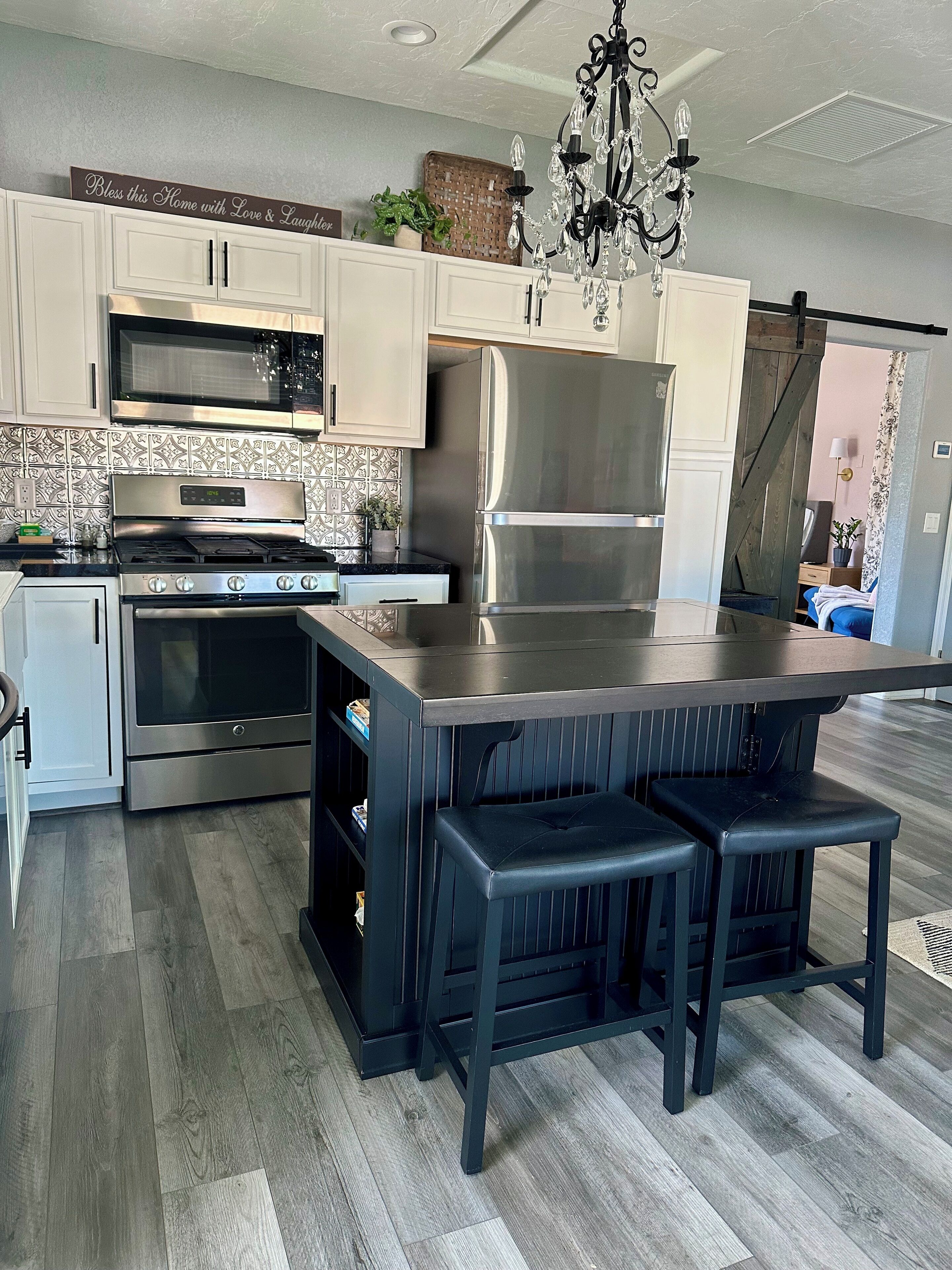 Bedroom has 32" Smart TV, comfy queen bed with spa quality sheets, black out shade, and a new twin size futon. There is also a queen size 18" deep premium, self-inflating air mattress that can be used in great room or bedroom for extra sleeping space.