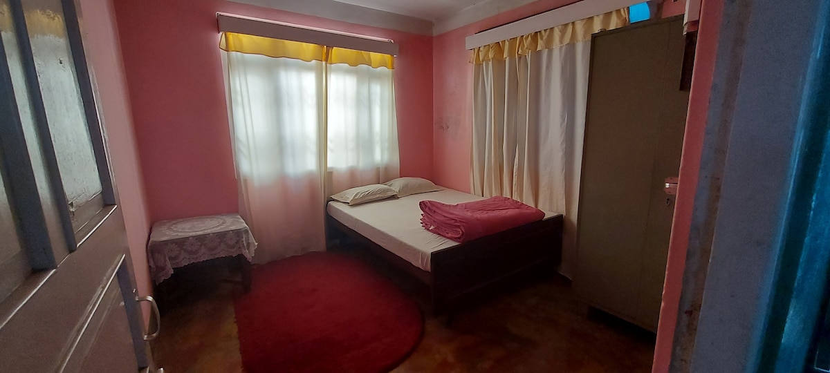 Forget your worries in this spacious and serene space located at Taktse .Bojoghari ( 6 .5 km from the MG Marg ) . Perfect for two people . It has a room attached to a living area bathroom with a fireplace .