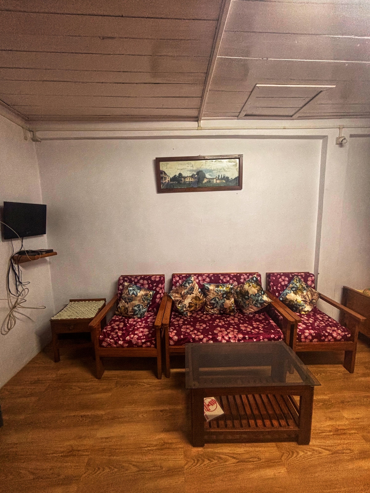 Your room has one double bed and one single bed. The room is well furnished and is kept neat and clean. The washroom is well tiled and has wash basin, shower area, Western Commode and geyser.