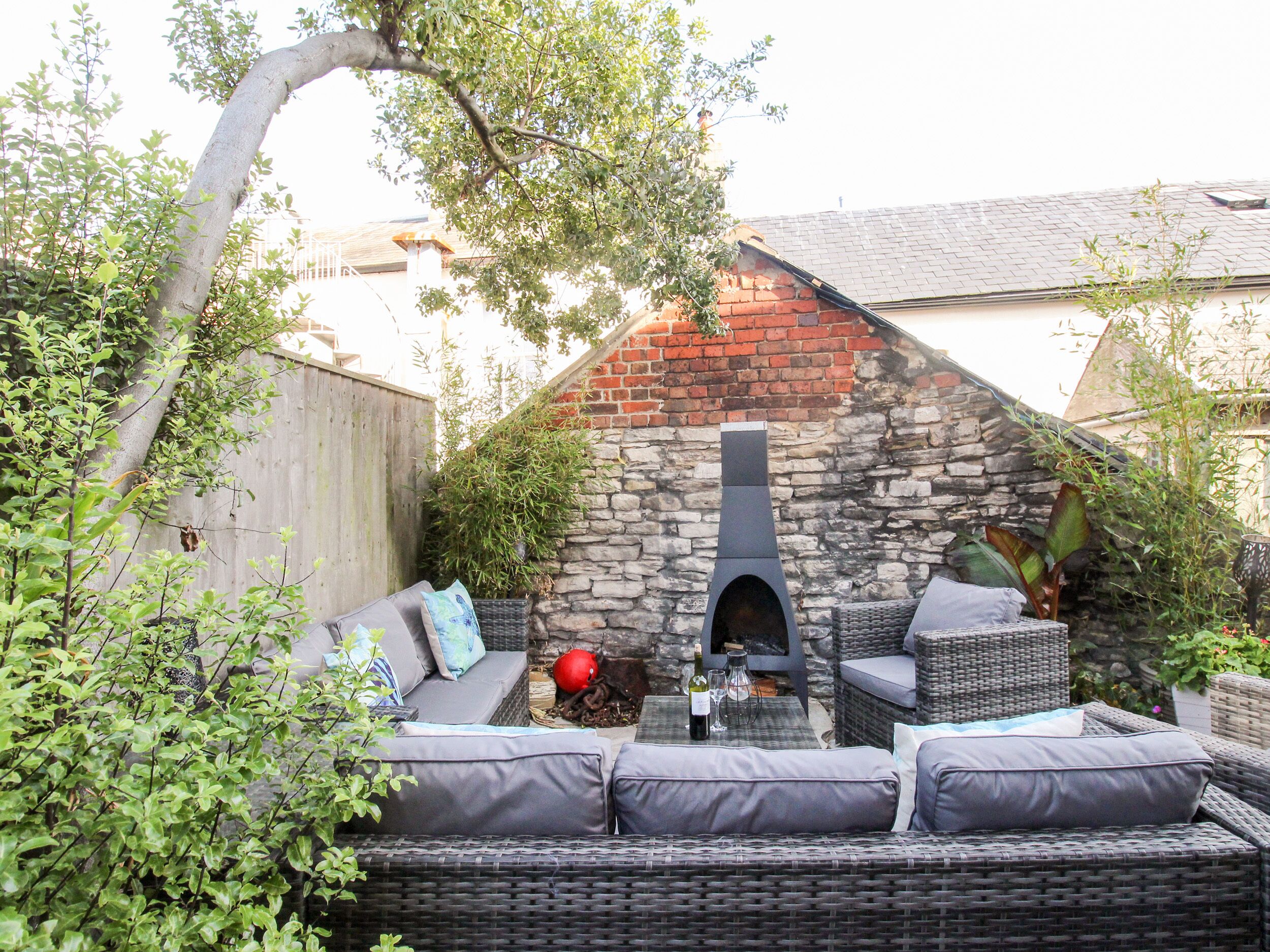 It’s a surprisingly sunny spot and perfect suntrap in which to relax with a glass of something at the end of a busy day enjoying yourself – or even for some alfresco dining.