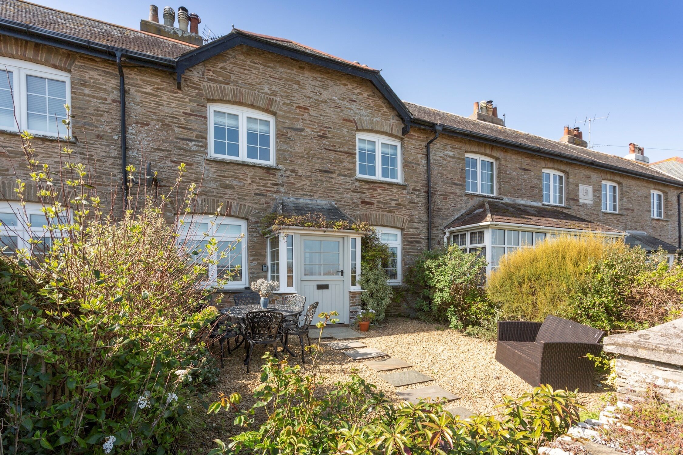 At the front of the property, you will find a small patio area that is perfect for sitting out and enjoying the sea air at this holiday cottage in the South Hams.