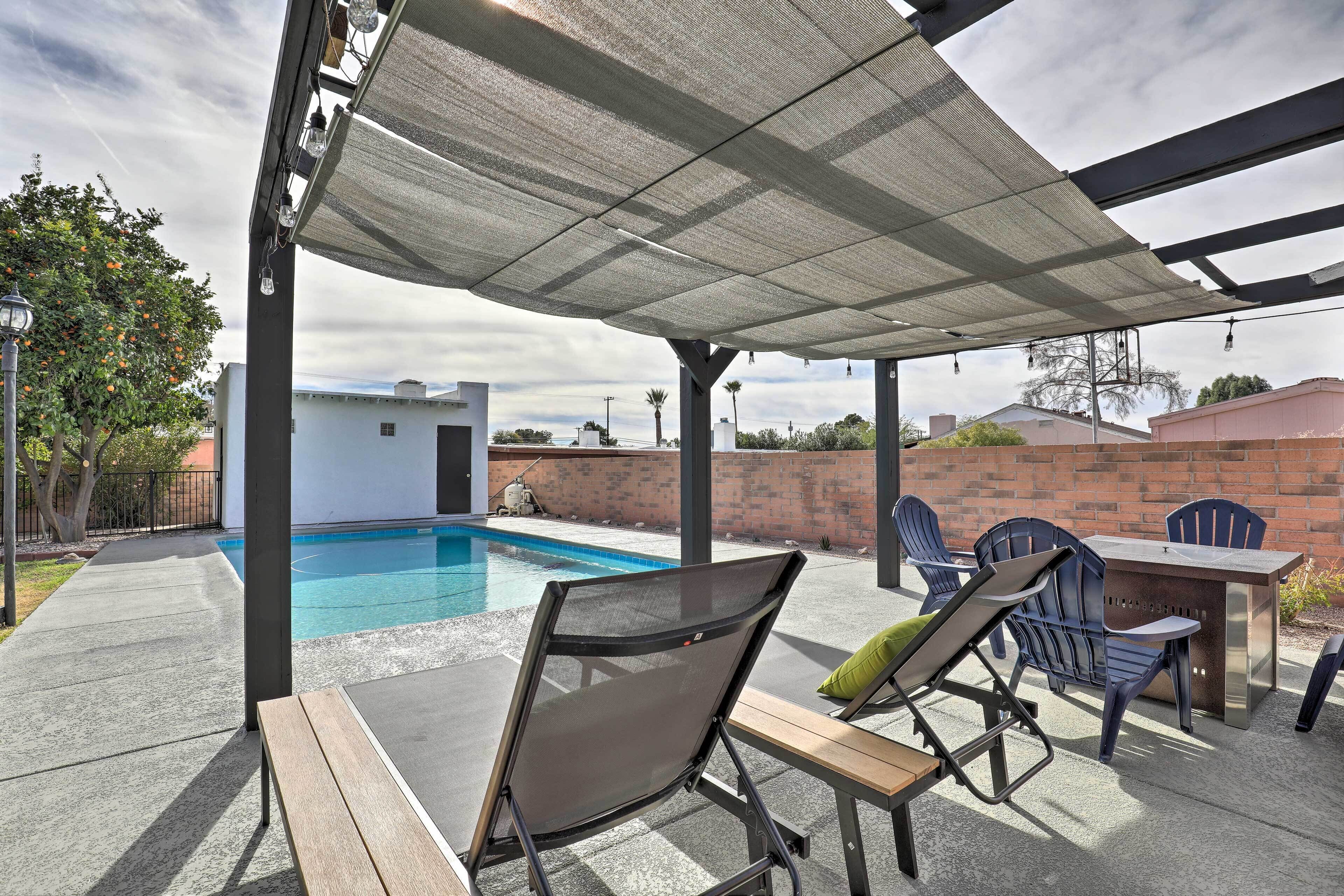 Searching for the perfect launching point to experience all Tucson has to offer? Look no further than this sweet and simple 2-bedroom, 1-bath vacation rental! This cottage features all the essentials plus a courtyard with a shaded dining area, a fire pit, and mountain views. See the iconic cacti at Saguaro National Park, explore Tohono Chul, or tap into your inner aviator at the Pima Air & Space Museum. In between adventures, relax and recharge at this humble home — book now!