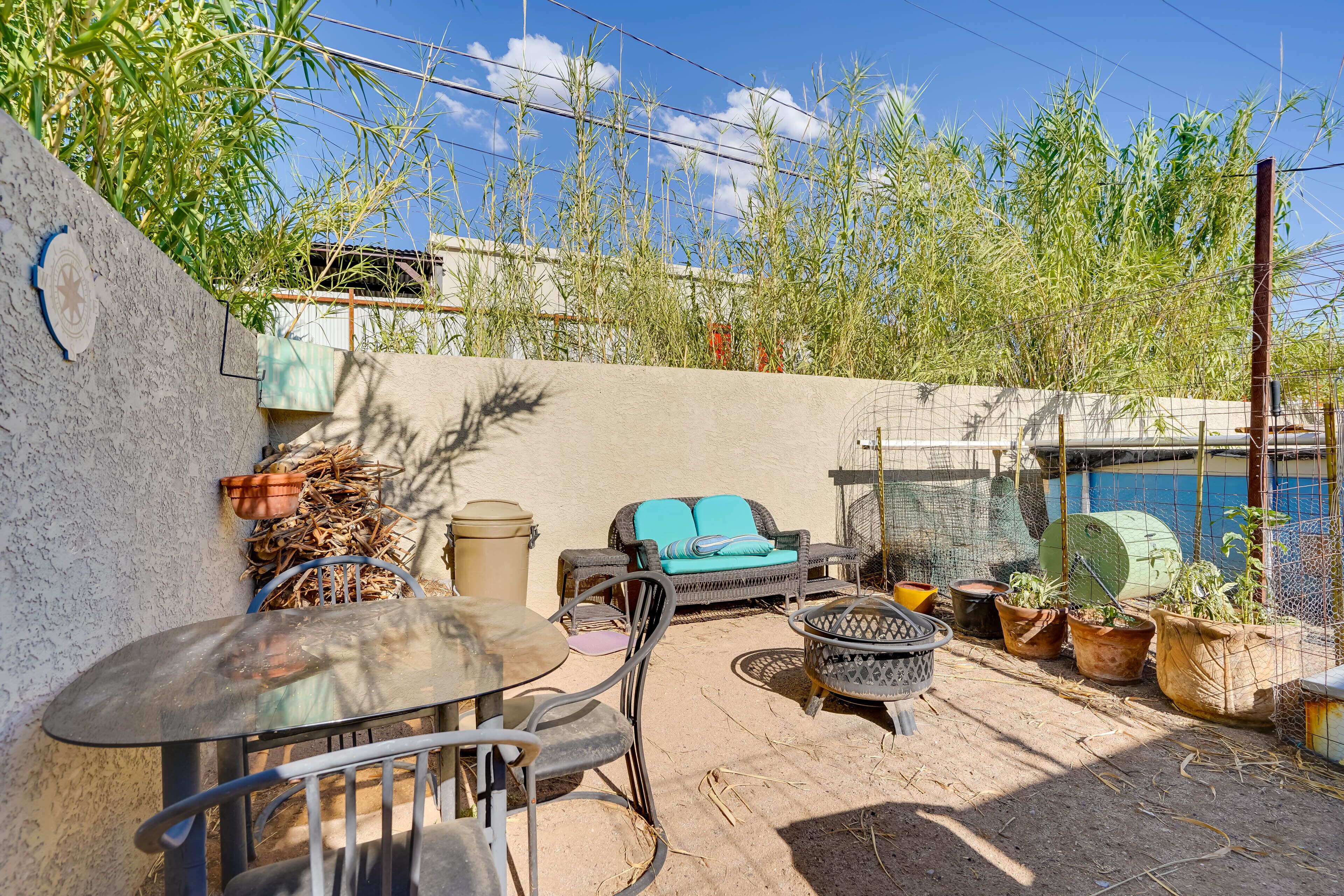 Savor Tucson's spectacular weather on the spacious rear patio, furnished with comfortable seating and surrounded by local flora. Enjoy alfresco dining, birdwatching, or simply relaxing with your morning coffee as butterflies flit about the small yard.