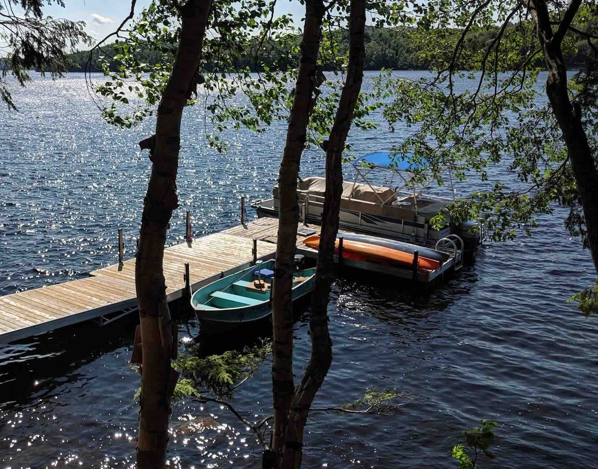 A 14-ft Grumman aluminum boat with a 9.9 hp motor, 2 sit-on-top kayaks and a canoe are included with the rental. You will have direct access to all of Middle Saranac Lake, its 18 small islands, two sandy beaches and our connecting and very scenic Weller Pond, all just minutes away. Our new, aluminum dock with built-in ladder stretches 24' onto the lake and provides hours of fun safely jumping into the water. For those guests bringing their own boat, docking right there is easy and convenient.