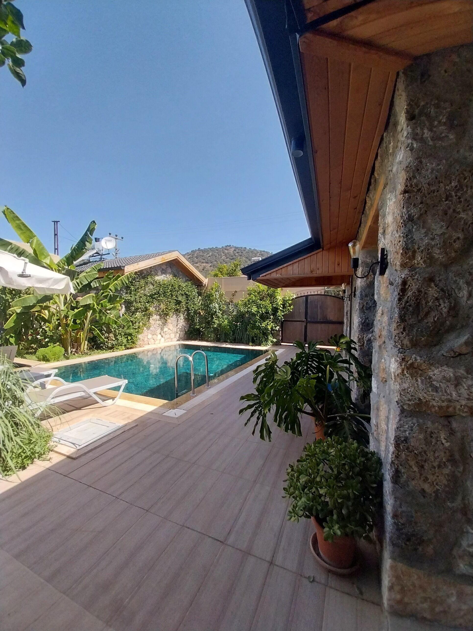 - "A beautiful spot high in the hills, a lovely property separate from owner's and two other rental properties. A gorgeous small pool, flanked with orange trees and antique Indian terracotta pots. Lots of great old artefacts throughout making it a characterful and unusual holiday choice. Very quiet except from the welcome of the owner's two dogs and occasional happy shriek from his adorable little daughter. A car a must as need to navigate an uphill and stony road for access as well as for finding the local beaches and restaurants not to mention the fascinating ancient and historical sites which abound . Friendly and knowledgeable American and Turkish owners"