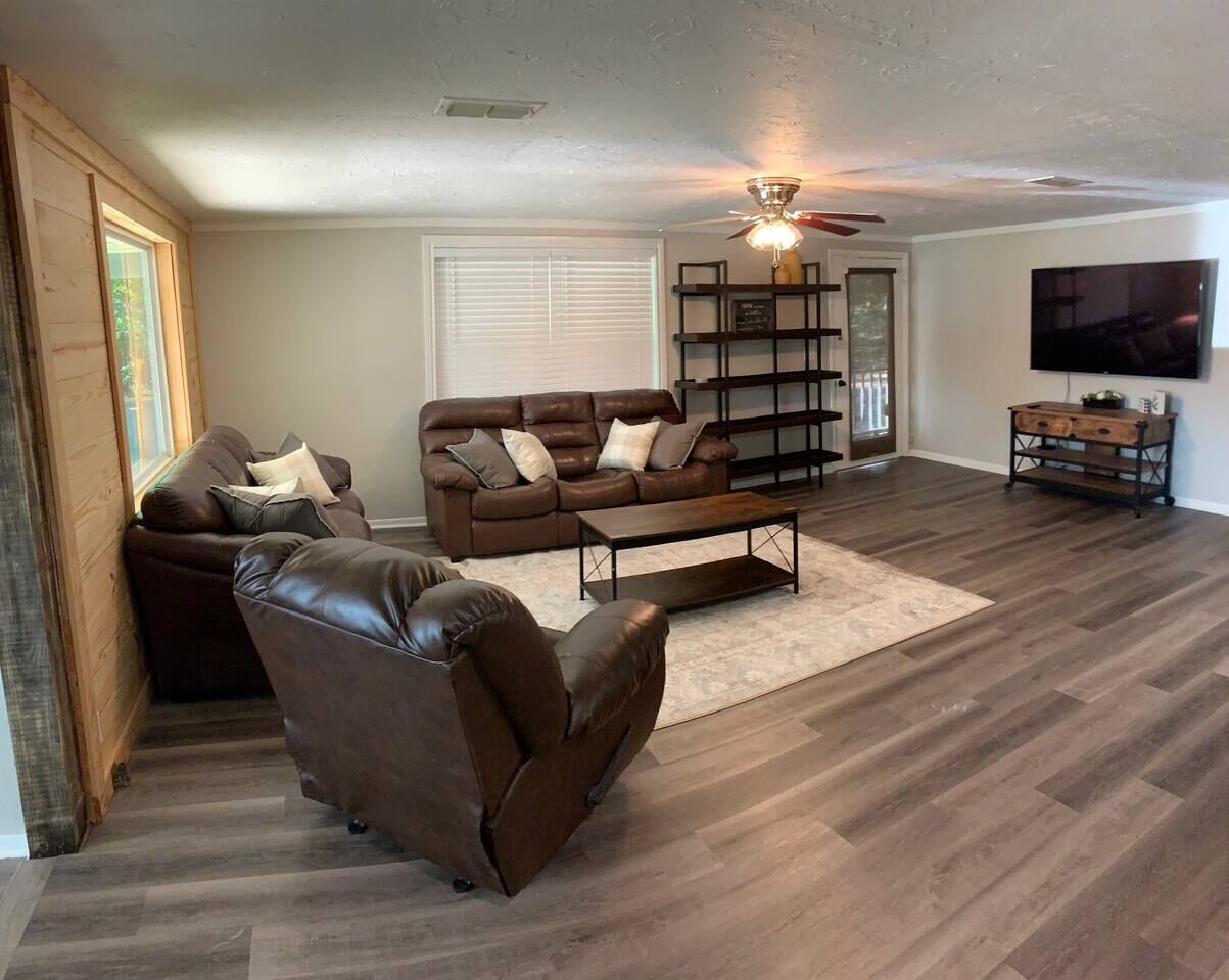 - "Exactly as seen in photos and just as clean. Nice size living area with very comfy furniture was nice escape from the heat. Located on a quiet cove with little boat traffic so was great for kayaking. Would stay here again." - "Great clean house, will be back" - "This property was very close to our family and we loved the open floor plan with the fishing deck. The owner had a Christmas tree up as well, which was a nice touch and we appreciated it. As was previously stated in another review the plumbing needs updated, specifically the toilets. The master bedroom mattress wasn't very comfortable either. With those upgrades it would make a big difference. It was perfect size-wise for our family of six."