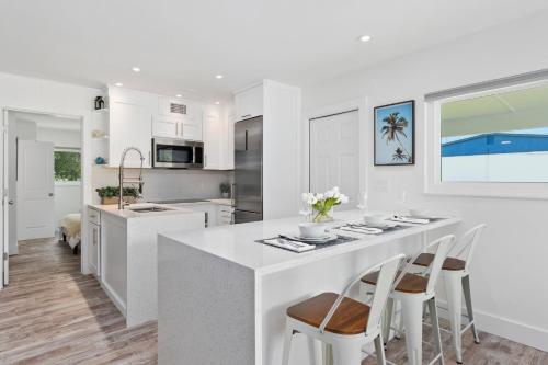 Coastal Chic Cottage close to Downtown Stuart, beaches, shopping, & dining! Located off East Ocean near Riverside Dr and steps to waterfront Hildebrad park! One block from Cleveland Clinic North! Unit has been completely remodeled, furnished, and updated from floors to ceiling. Comfortably sleep 4 guests: 1 Queen bed, 1 King bed. No restrictions for parking vehicles, separate laundry room with washer/dryer, attached screened in back patio! One shared wall with adjoining unit-completely private!