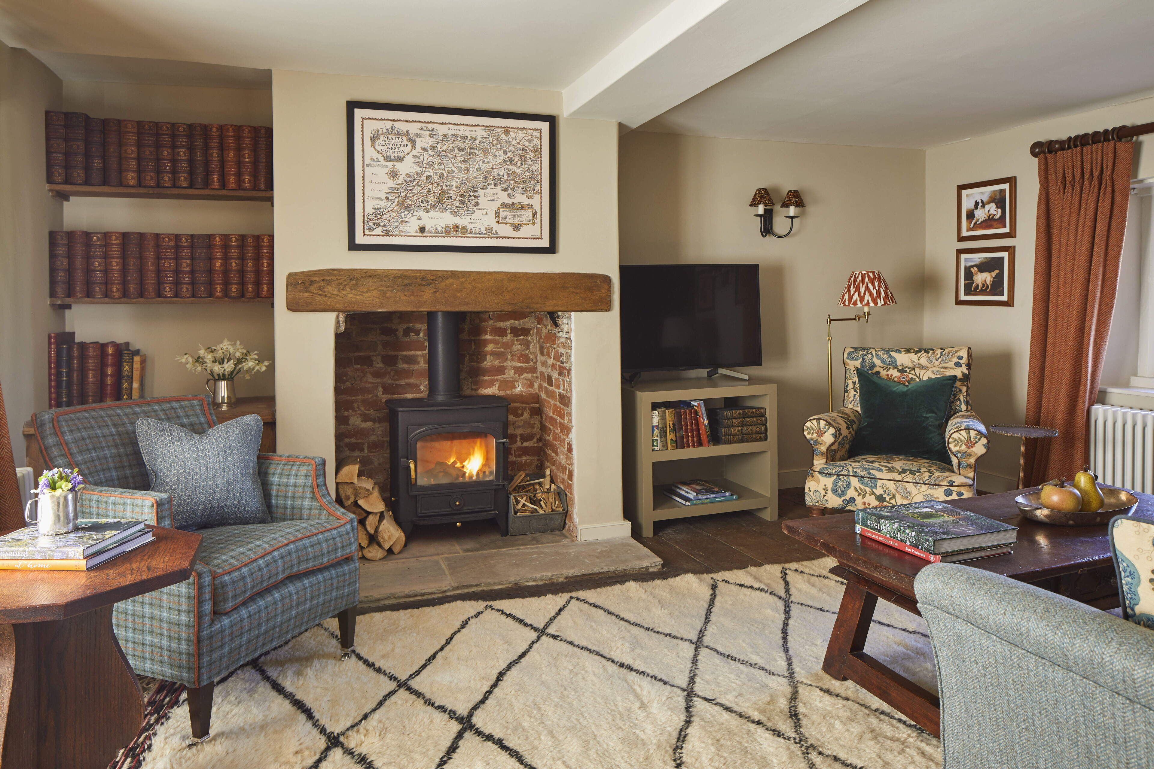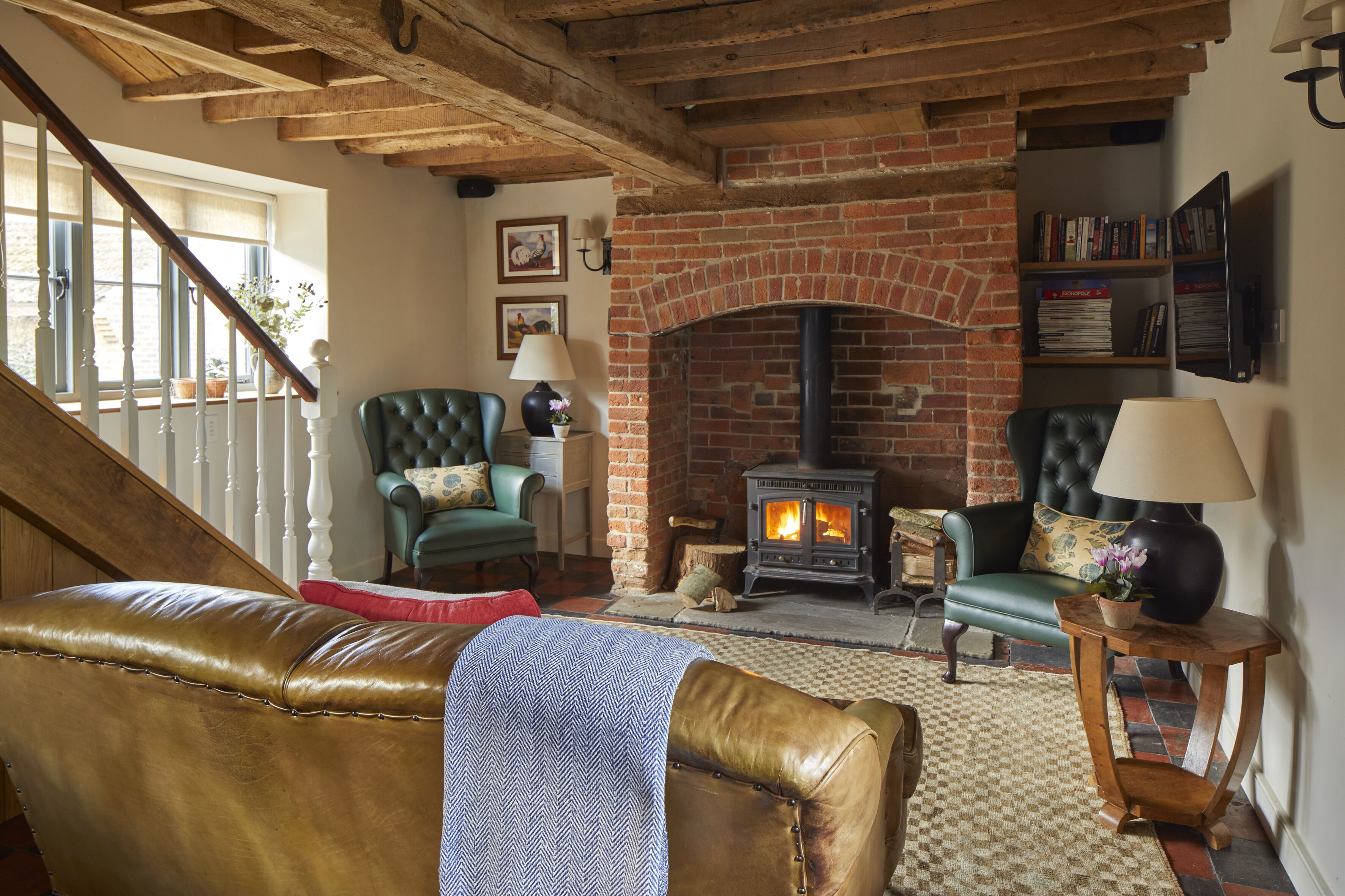 There is a large garden with lounge chairs, a fire pit, gas BBQ, and an outside dining area, all setup to maximise the stunning views across the Priory Orchard. This traditional red brick cottage is so cosy you won’t want to leave except to go to the pub, of course.
