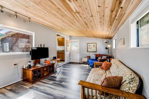 The 900 sq foot rustic cabin is bright and airy, with water views from every room (except the bathroom), cedar ceilings, and new lighting and a ceiling fan in the living room that keep it cheery year-round, even on stormy days.