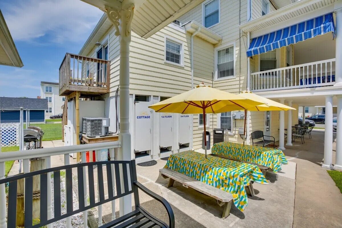 - "We enjoyed our stay at this cottage, perfect for our family of 4. Close enough to the beach but far enough away from the hustle and bustle of the boardwalk. I would recommend putting an a. In the bedroom with the bunk or a ceiling fan. My daughters were hot in the evenings.Having to bring linens and towels was kind of a pain, but Clair did offer me a linen service for a few. Would stay here again" - "Great little house, especially for a family. A gew blocks to the beach/boardwalk. The community yard was a differentiator for us allowing kids a space to unwind and play when hanging at the house. Only opportunity for improvement was the beds were not very comfortable and we didn't have internet on the wifi while we were there. Might have been an Optimum issue that the owners couldn't control."