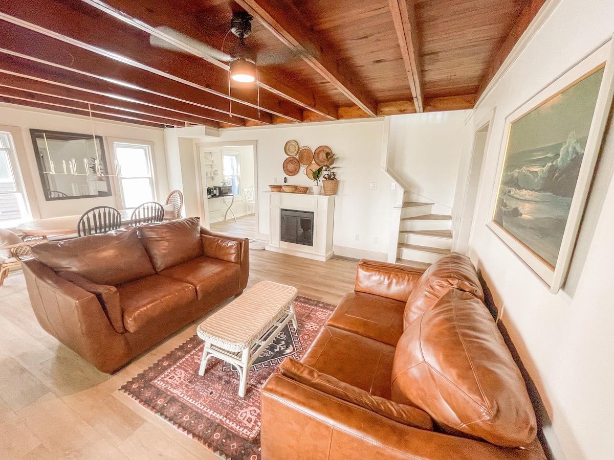 ● Main Floor: Boasting a brand-new open-concept living, dining, and kitchen this floor leads to panoramic views of the tiered deck and beach. The kitchen is equipped with stone countertops, stainless appliances, a dishwasher, and all the essentials.