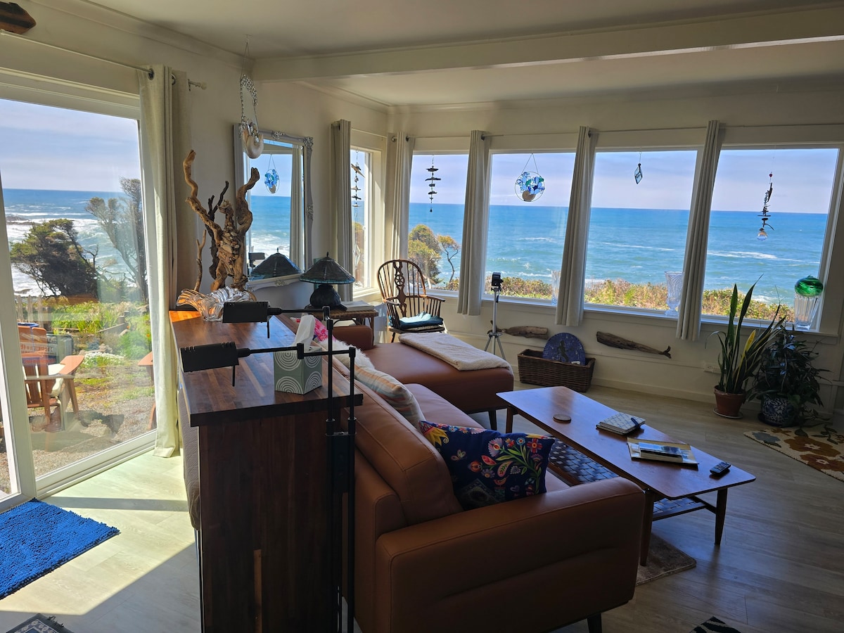 The Blue Pearl is calling. 1946 coastal cottage nestled just above basalt rocks offers you a relaxing place to take in the sites and sounds of the crashing waves. Located next to the 804 walking coastal trail and also the Amanda trail leading to the Amanda Grotto and Cape Pepetua.