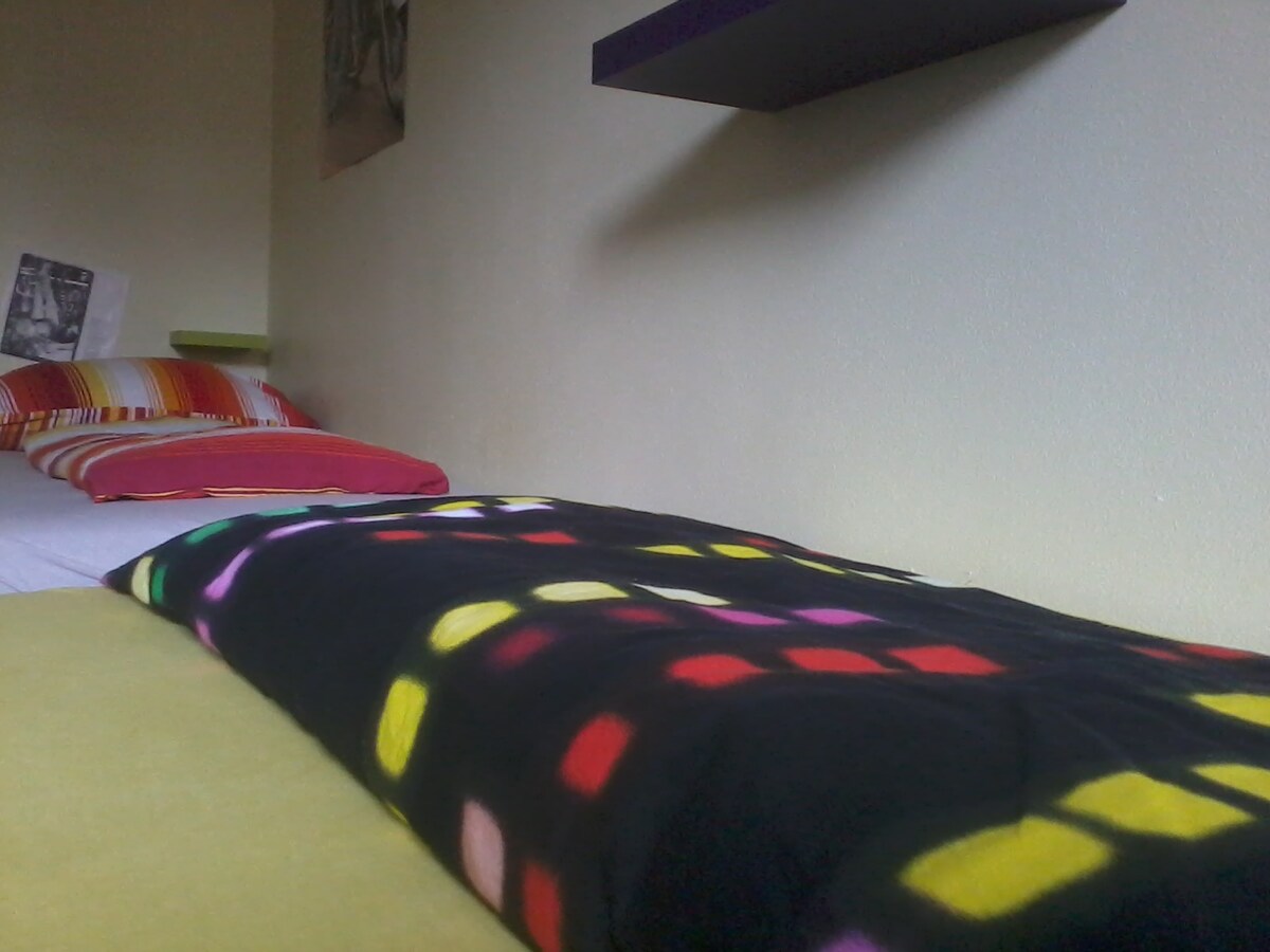 Functionally furnished room . Bathroom and toilet facilities are shared.
