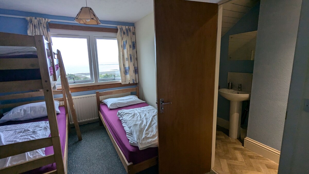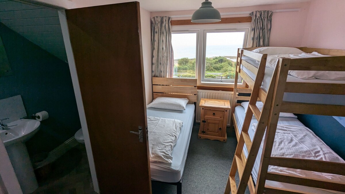 The room has two single beds with a wash hand basin and shared bathrooms just along the corridor. The sea view is just gorgeous too!
