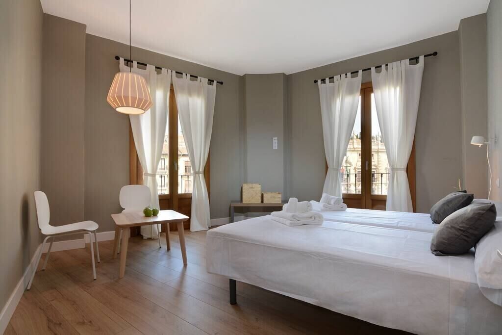 We are a small hotel located in a beautiful building in the famous Navas street in Granada. On the ground floor we have the reception and our bar with outside seating. On the first, second and third floors the single and double rooms and on the top floor a larger room with its terrace and views of the city and the Sierra Nevada. This listing is for the twin room only.