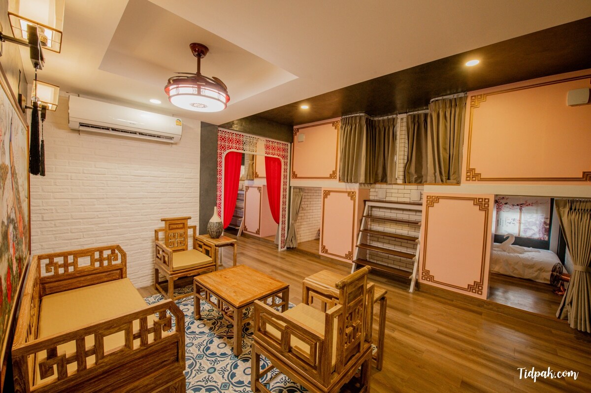 This room is a private room for 2 people, It can add an extra 6ft bed to sleep 2 more at a additional cost. The room type is designed in modern Chinese style. It is in the heart of the city In the famous breakfast place in Hat Yai and also has a cafe At the service of authentic matcha drinks that have been awarded the first prize of Japan. Served with french pastries Made from high quality raw materials It is real flour and butter from France.