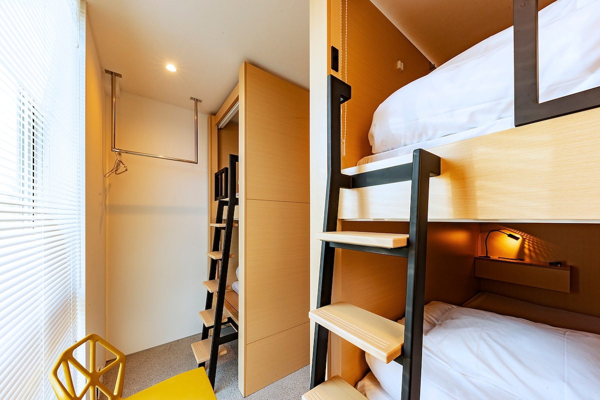 Although the room is compact, it is made with a sense of cleanliness that has everything you need.There are 2 bunk beds.A functional bed with a security box, reading lights, luggage hangers, and laundry ropes on each bed.