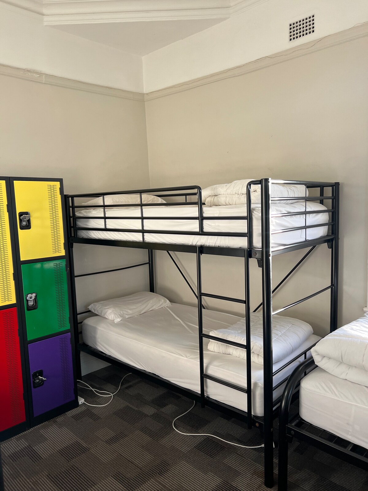 Each room is fitted with a bunk bed that sleeps two people and includes linen, towels, soap, kettle, tea and coffee. Each room has its own mini-fridge and some are equipped with a microwave and kitchenette.