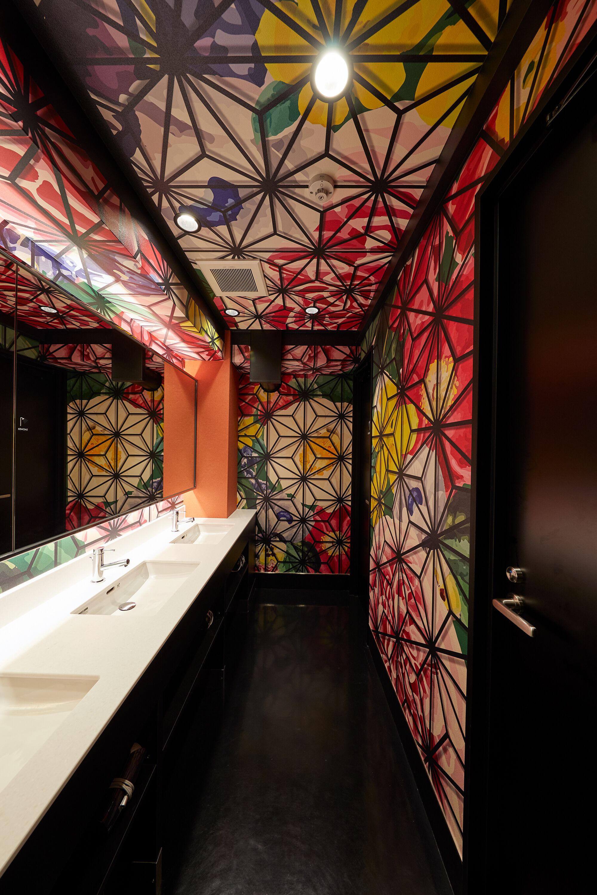 There's a big kitchen, fridges, laundry, tables to hang out & a Japanese Tatami area.