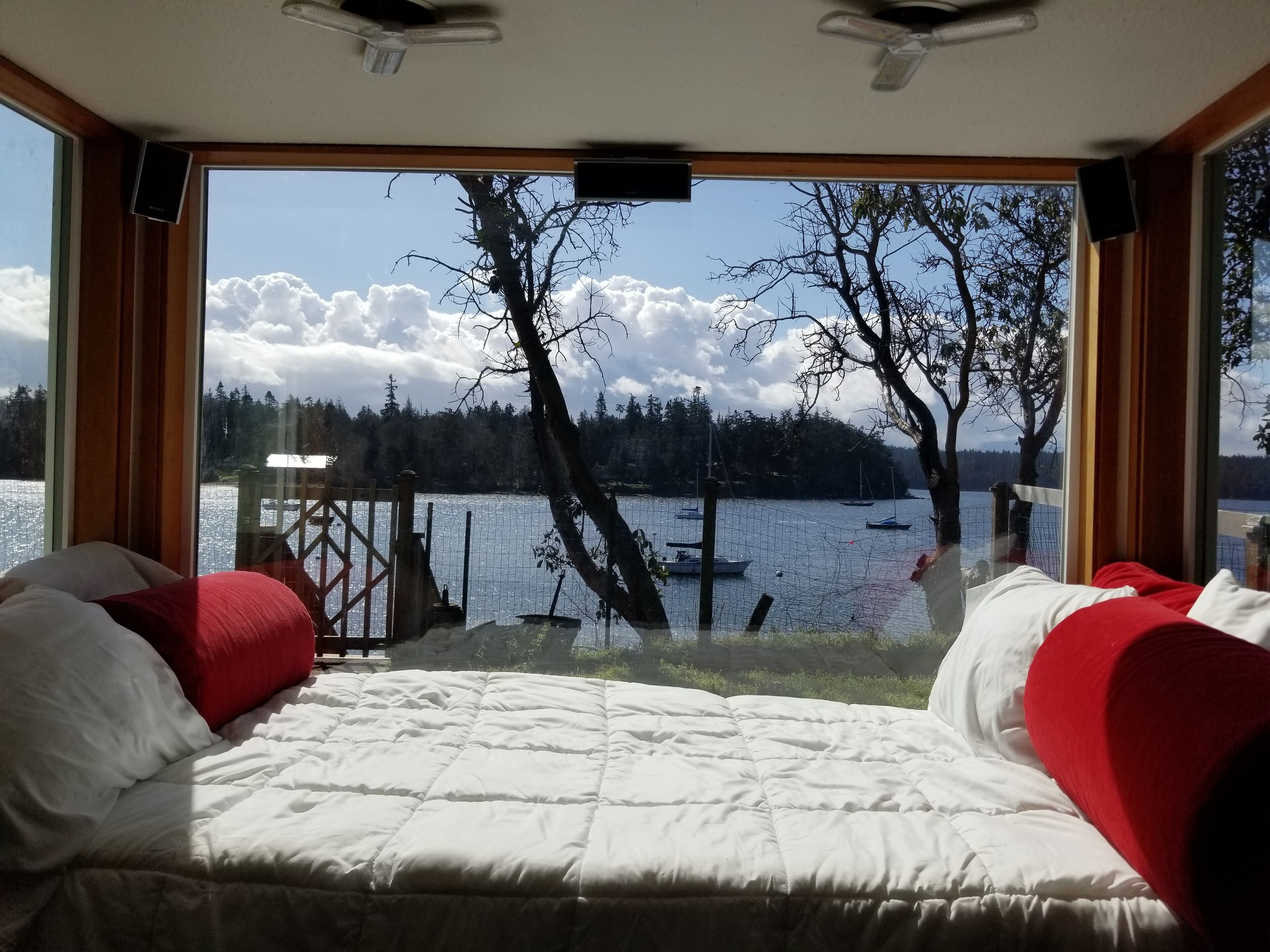 Imagine going to sleep and waking up surrounded on 3 sides by views of Mystery Bay just feet away. This is a twin-size daybed in the living room There are curtains to provide very little privacy, but on 3 sides you overlook the bay just 20 feet away. You will share the rest of the house (bathroom, kitchen, dining room, and living room) with David, 2 dogs, and 2 cats. You can access the beach down the stairs near your bed and rent a canoe or rowboat to explore the bay. Enjoy one of the fire pits in the evening and maybe get to know Rico, the dwarf Nubian goat. There are several parks within walking distance including the wonderful Fort Flagler State Park just 2 miles down the road.