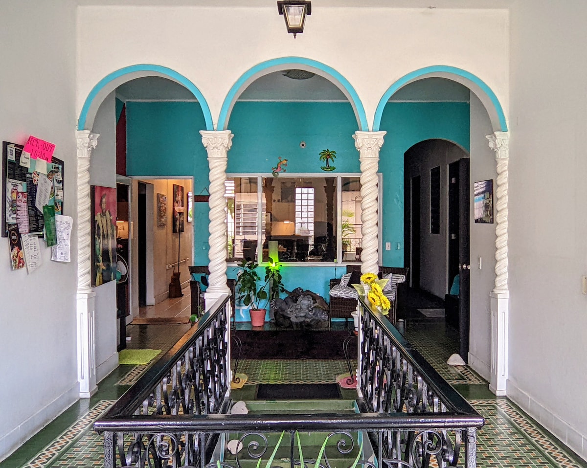 MEDUSA'S is a two-story historic building one block from the Center of Aguadilla. MEDUSA'S Hostel is located on the second floor of a historic building built in the 1800s as a mansion! This building has amazing columns and old tile with two balcony rooms overlooking the Main Street (now dont judge this book by its cover, our baby is definitely in need of a paint job!) however all our guest are joyfully delighted walking up stairs into the common areas with a relaxing waterfall and plenty of seating.