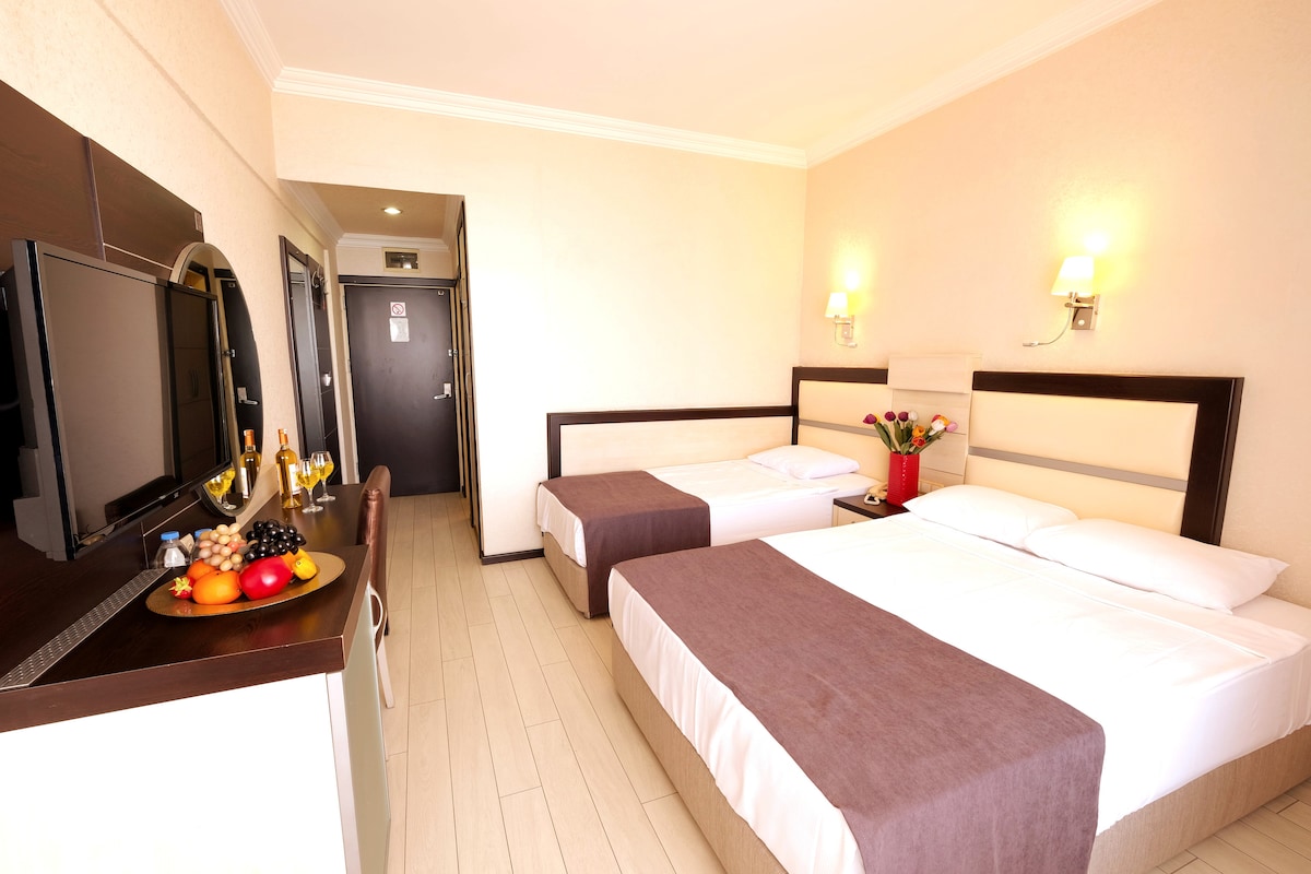 Kleopatra Ada Beach Hotel offers 86 accommodations with minibars and hair dryers. Rooms open to furnished balconies. LCD televisions come with satellite channels.