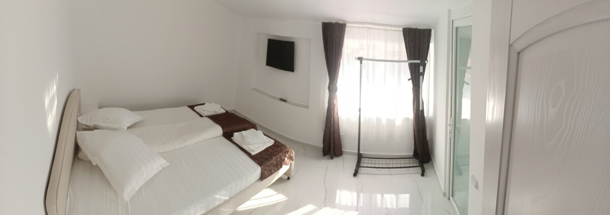 Located in Turnu Măgurele, Hotel TURRIS features a terrace, restaurant and bar. With a shared lounge, the 3-star hotel has air-conditioned rooms with free WiFi, each with a private bathroom. The property provides a 24-hour front desk, an ATM and luggage storage for guests. At the hotel, each room includes a desk. All rooms come with a flat-screen TV, and some units at Hotel TURRIS have a city view. All guest rooms feature a closet. The breakfast offers à la carte, continental or Italian options. Craiova International Airport is 75 miles away.
