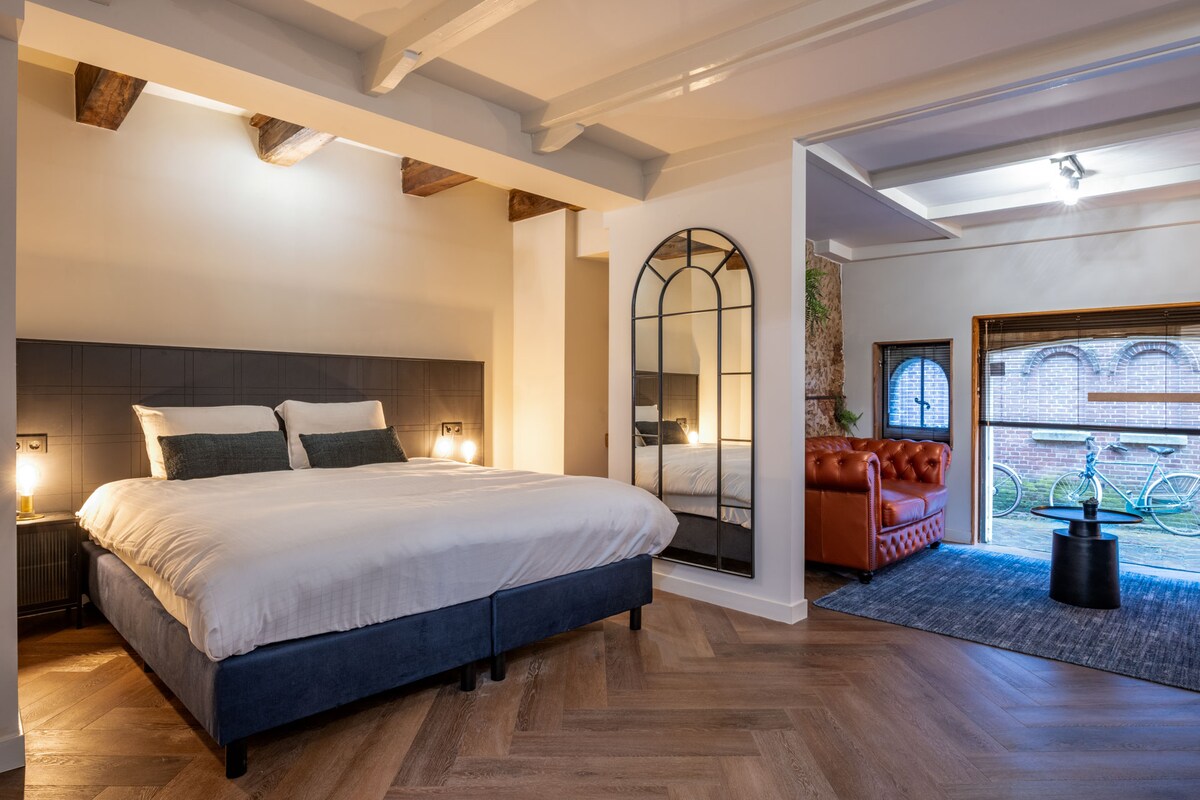 The Loft style brings the raw charm of a warehouse with industrial elements to the hotel room. Stone walls, ceiling beams, and metal accents create a tough and adventurous atmosphere.