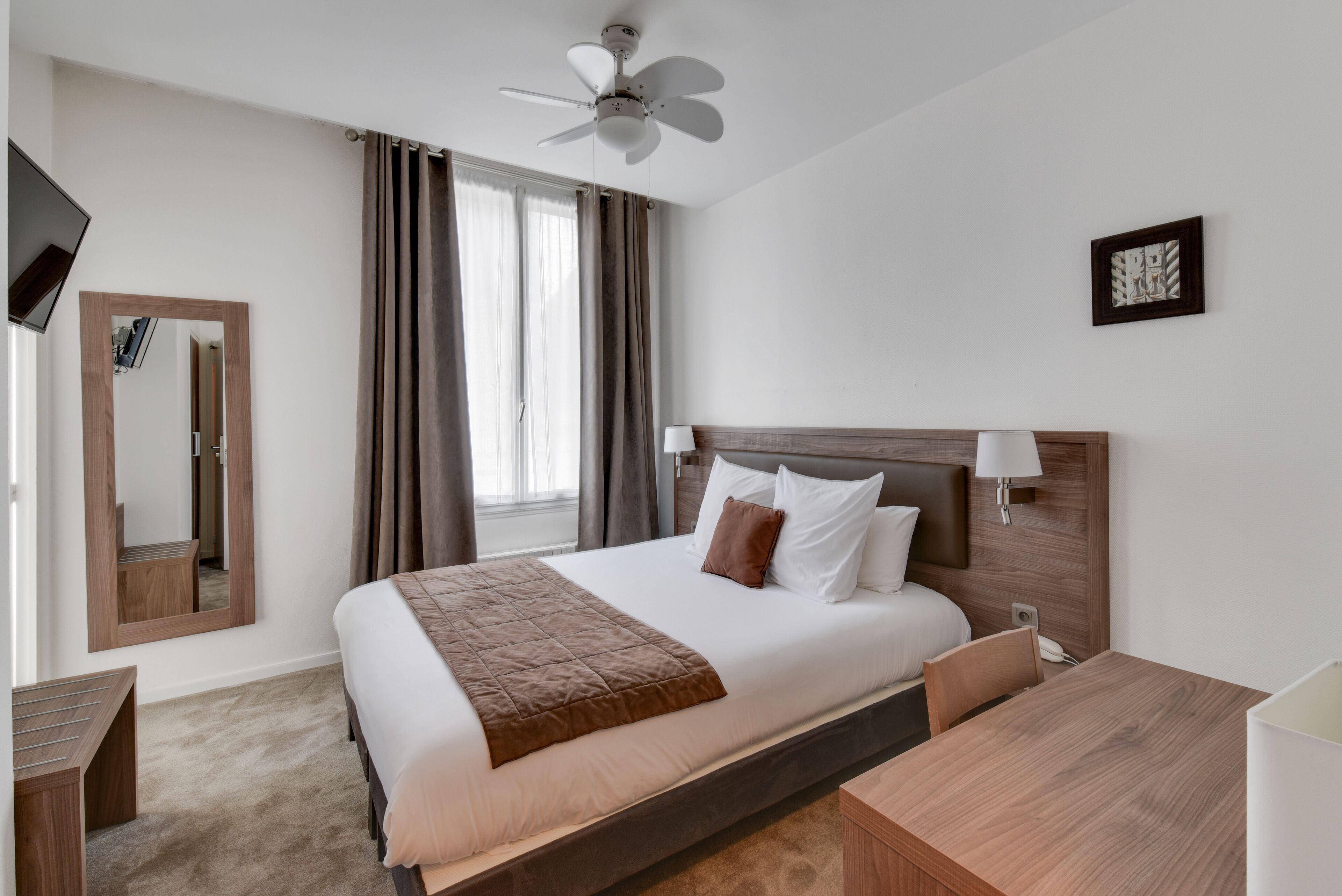 - "good and friendly welcome from the staff. I really appreciated the central location of the hotel and the quiet street. Clean room and bathroom and efficient wifi. " - "Good classic hotel right in the heart of Angers. Rooms are comfortable and there's good value for the money. We parked nearby for only €5 the whole night." - "Nickel " - "Very friend staff , clean quiet room , walkable to dining options" - "Correct " - "Very friendly and welcoming staff. The hotel is very conveniently located at the center of the city, in a small and quiet street. "
