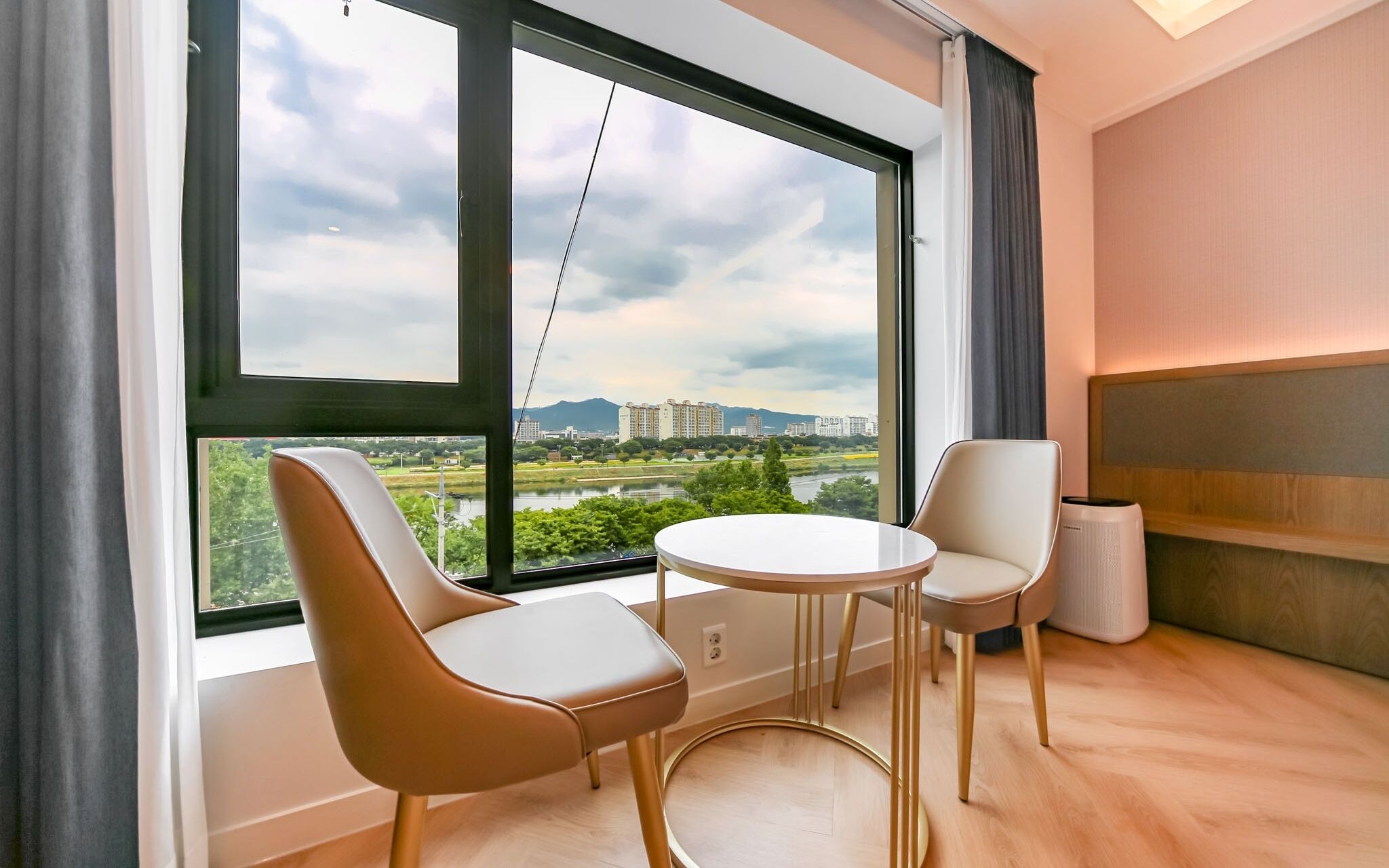 Riverside in February Gyeongsangbuk-do offers 28 air-conditioned accommodations with complimentary bottled water and bathrobes. Each accommodation is individually furnished and decorated. 55-inch flat-screen televisions come with cable channels and Netflix.