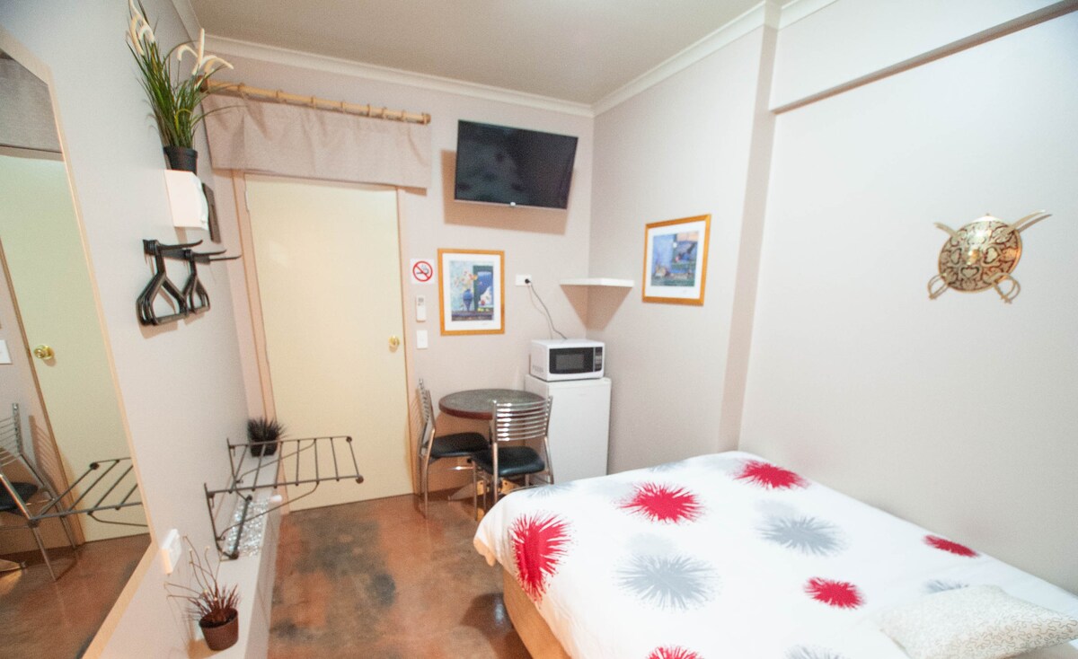 This overnight compact small motel style accommodation is ideal for corporate, students or travellers looking for as little as one night to long stay accommodation, double bed only. Our guests have quality comfortable beds, remote control split system air conditioning and heating, a flat screen television, large mirror and commercial wi-fi. This room does NOT have kitchen. It has locked access with a safety key option for late arrival or early checkout.