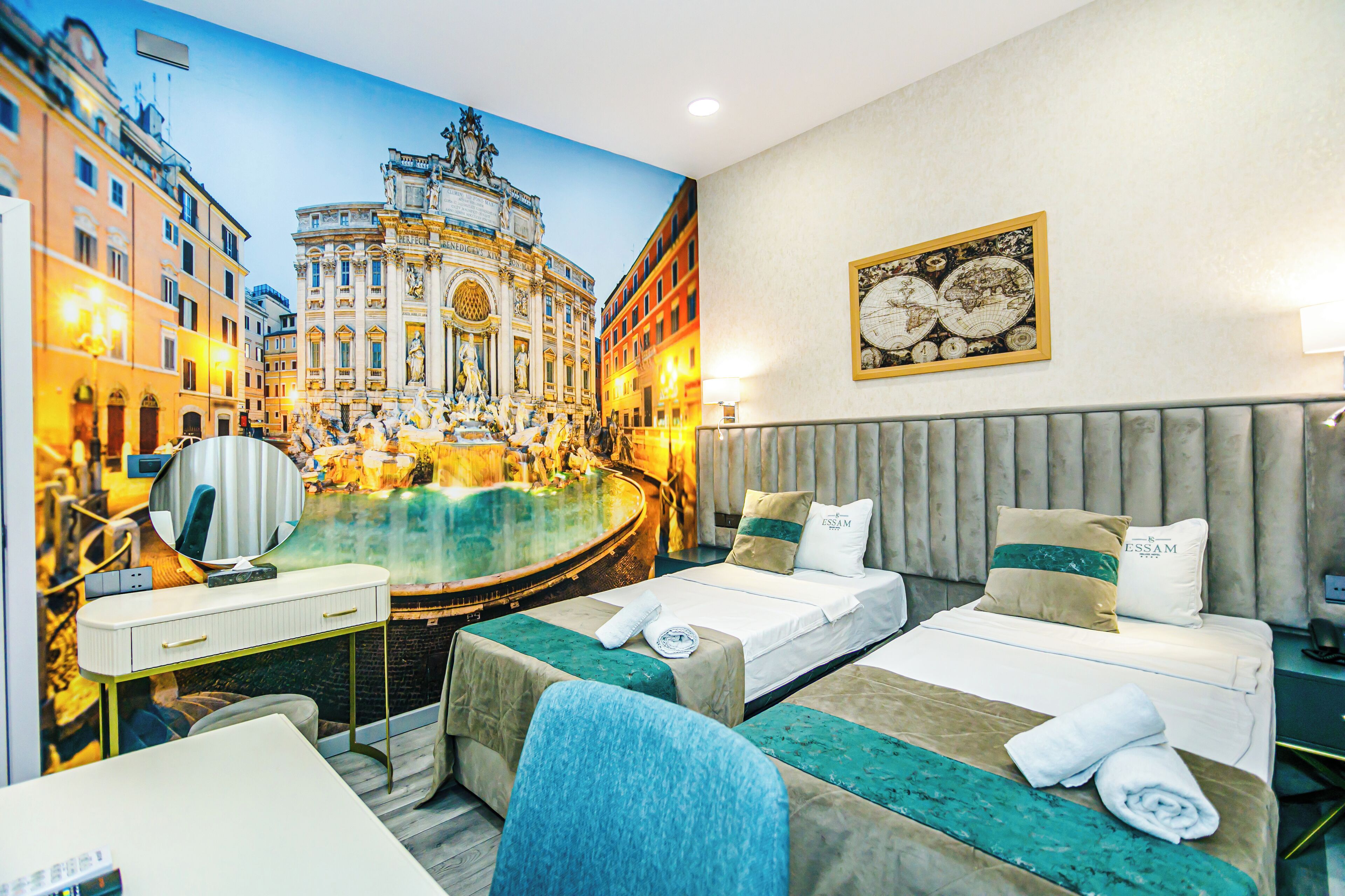 Essam Deluxe Hotel offers 50 air-conditioned accommodations with iPod docking stations and MP3 docking stations. These individually decorated and furnished accommodations have separate dining areas and include dining tables. Memory foam beds feature Egyptian cotton sheets, down comforters, and premium bedding. A pillow menu is available. Guests can make use of the in-room coffee/tea makers and minibars. Bathrooms include bathtubs or showers with rainfall showerheads, bathrobes, slippers, and complimentary toiletries.