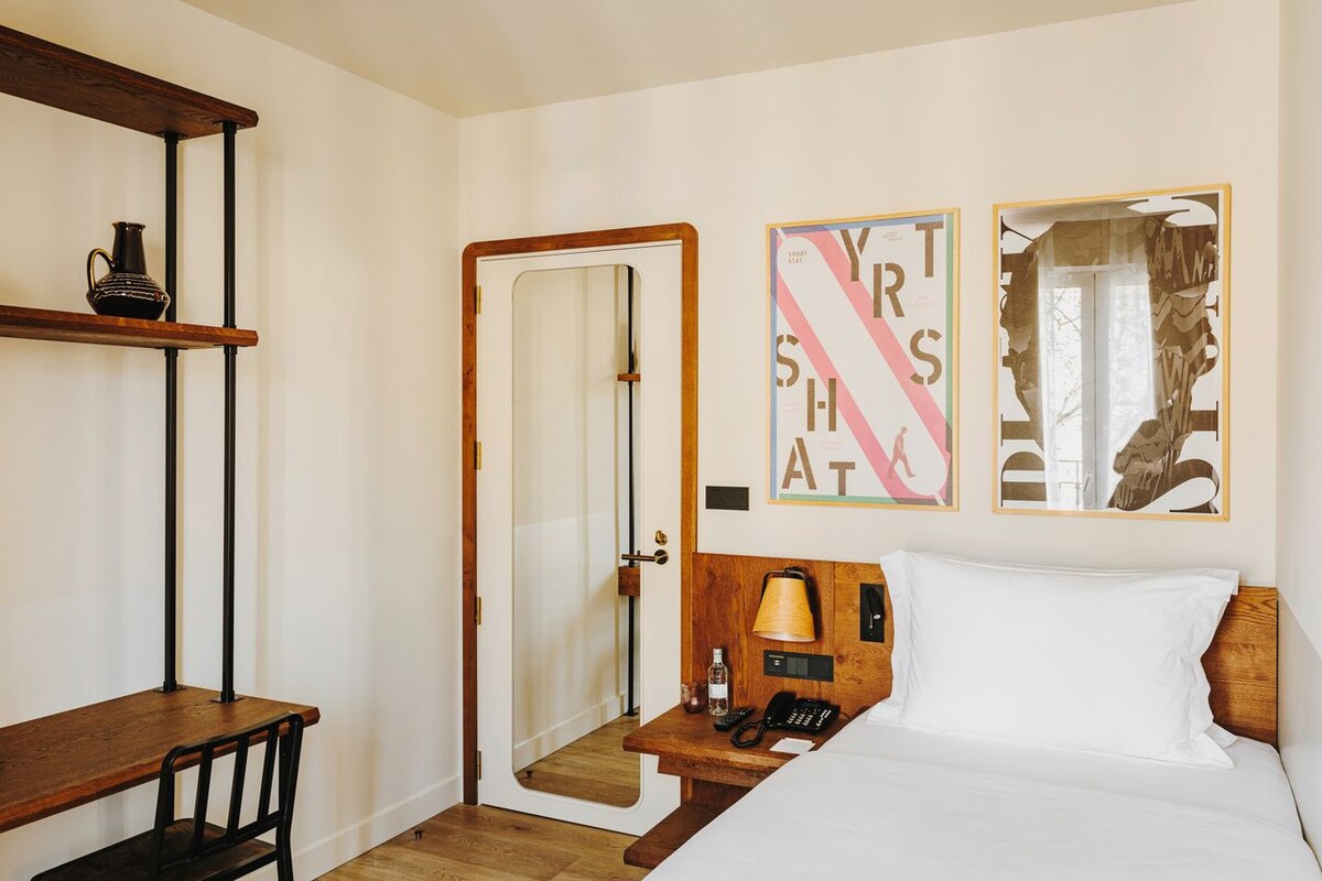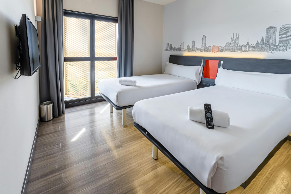 Discover our double room in the heart of Barcelona's iconic Eixample district. Designed for comfort and convenience, this spacious room features two separate beds, ensuring privacy for each guest. Modern amenities include a Smart TV, mini fridge and a safe box to secure your valuables. Revel in the luxury of a private bathroom equipped with premium fixtures. Our prime location is just a 15-minute stroll from the majestic Sagrada Familia and a mere 5-minute walk from Estacion del Norte.