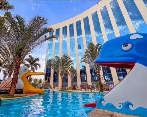 Barretos Thermas Park - CondoHotel features a fitness center and free private parking, and is within 30 miles of Thermas of Laranjais Water Park and 6 miles of Barretos Country Acquapark. Among the facilities of this property are a restaurant, a 24-hour front desk, and an elevator, along with free Wifi throughout the property. Outdoor seating is also available at the apartment. All units at the apartment complex come with air conditioning, a flat-screen TV with streaming services, a kitchen, a dining area, a safety deposit box, and a private bathroom with a walk-in shower and a hair dryer. Every room is equipped with a private pool featuring pool views. At the apartment complex, every unit is equipped with bed linen and towels. There is a coffee shop, bar, and lounge. Guests can relax in the garden at the property.