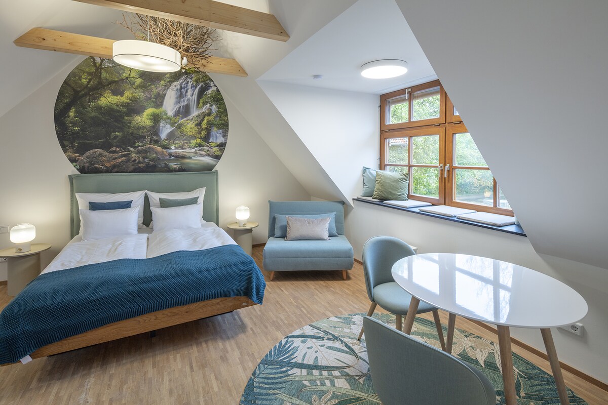 Staying in the KREUZSTEIN is a sense of life. The marketly ensemble offers retreats for body, mind & soul. Modern and sustainable materials and unique, high-quality interior await you. Here you can feel history & future in all. Our lovingly, individually designed boutique apartments, suites & themed double rooms are modernly furnished and combine sustainability, preservation of values and the strong connection to the region. WELCOME!